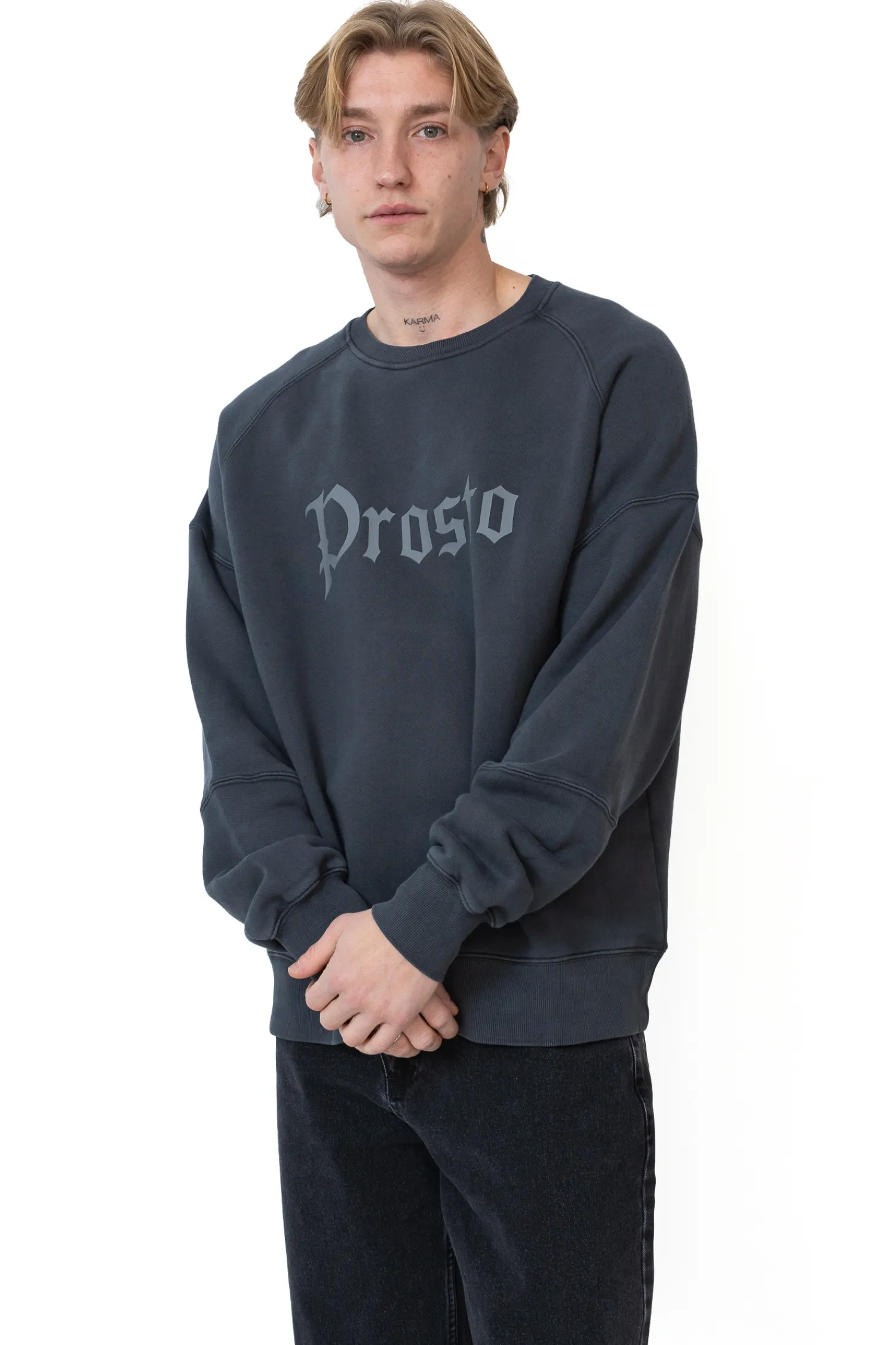 Bluza Bez Kaptura Prosto Goth Washed Black KL242MSWE1071