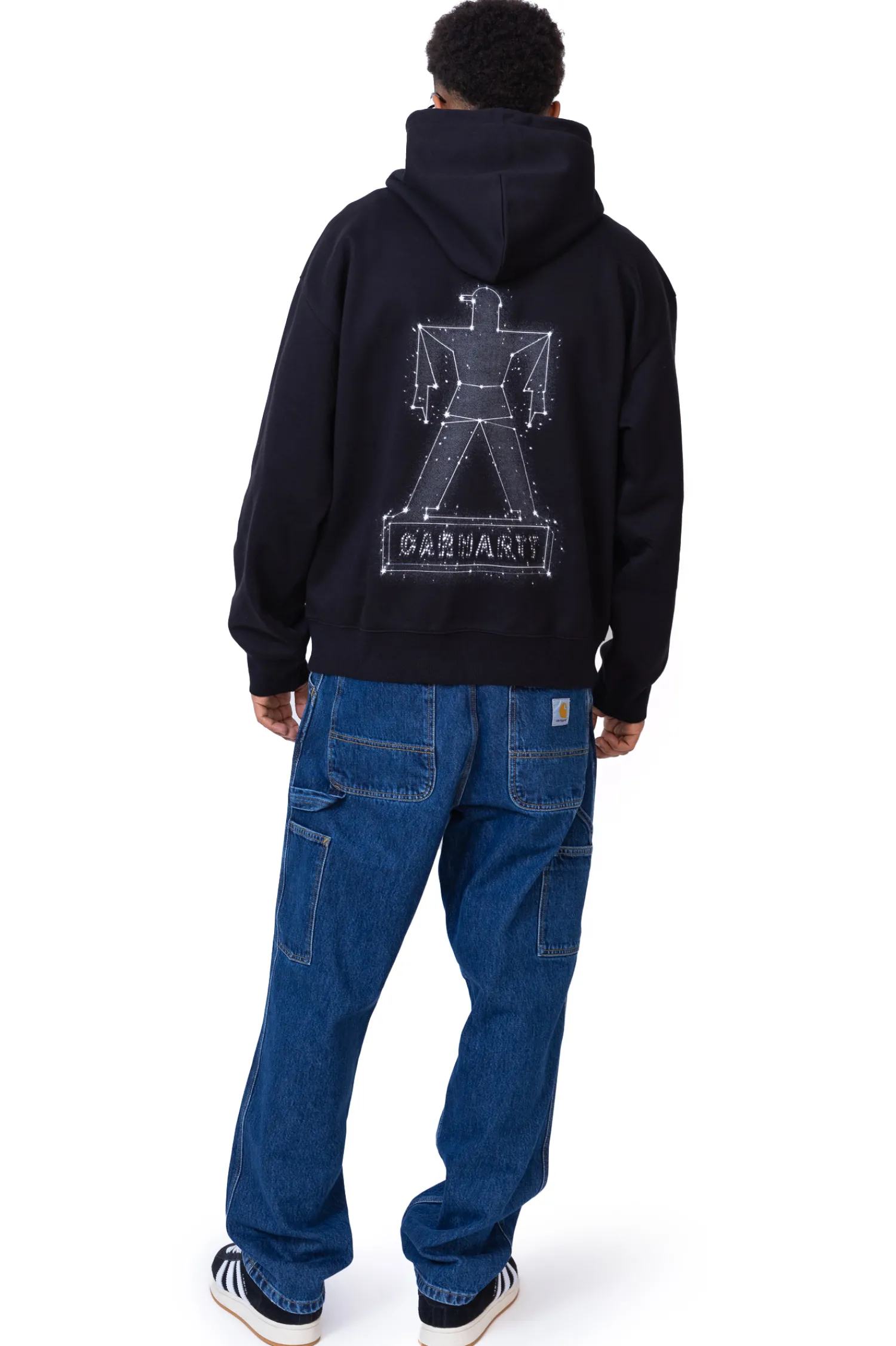 Bluza z kapturem Carhartt WIP Stargazer Black White I034689-0D2XX to połączenie minimalizmu i futurystycznej estetyki. Klasyczna czerń kontrastuje z efektownym nadrukiem inspirowanym gwiazdozbiorem, który nadaje jej unikalny charakter. To propozycja dla tych, którzy cenią niebanalne detale i wygodę na co dzień.
