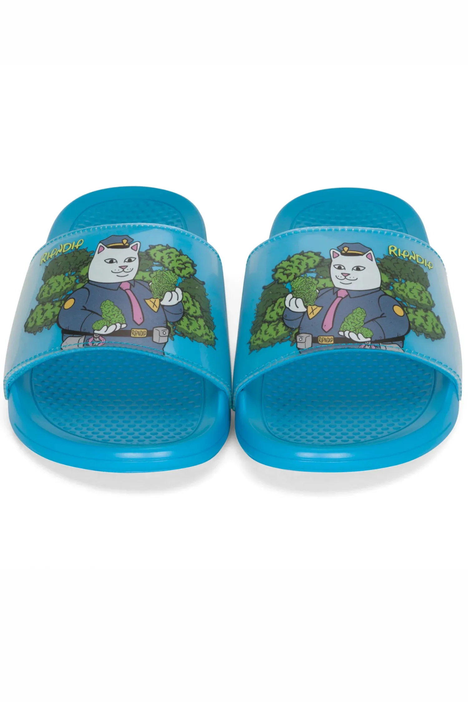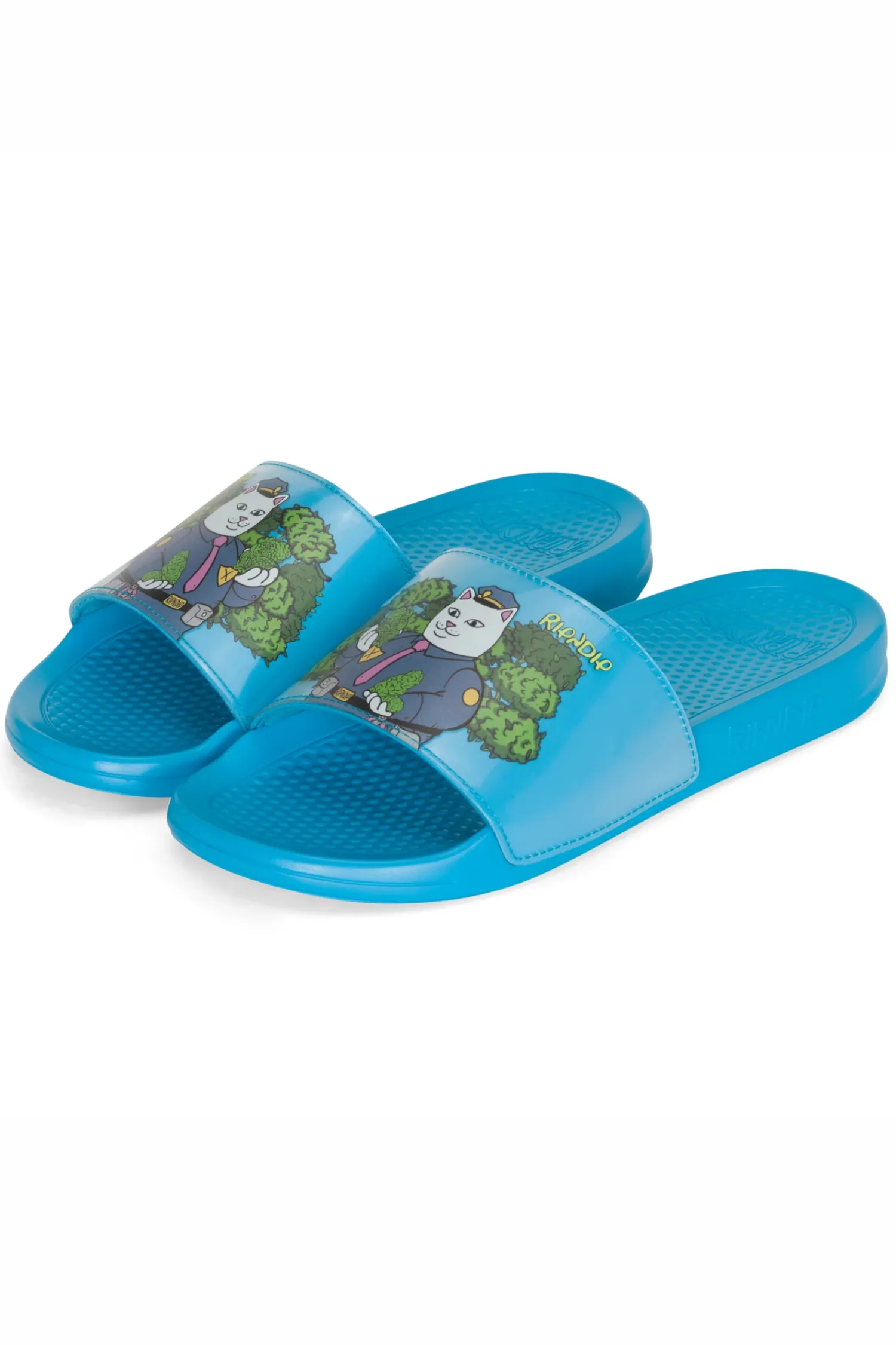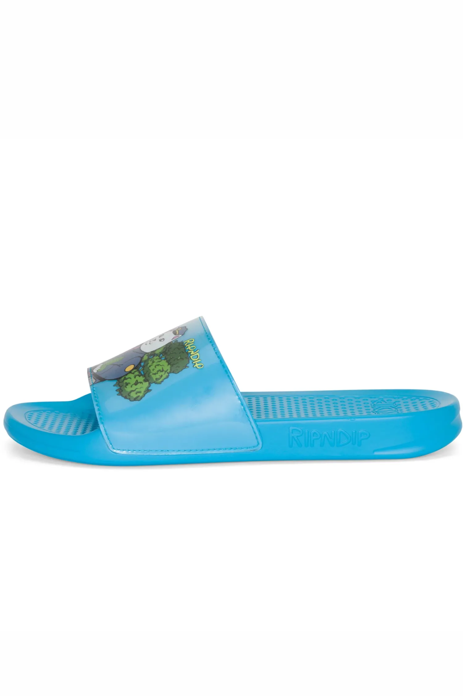 Klapki Ripndip Confiscated Blue RNDSPR24178 to wyraziste i stylowe obuwie, idealne na letnie dni. Klapki są w żywym, niebieskim kolorze, który świetnie kontrastuje z grafiką umieszczoną na wierzchu każdego z klapek. Konstrukcja klapek jest klasyczna, z szerokim paskiem na śródstopie, zapewniającym komfort noszenia. Dzięki odpowiedniej podeszwie z miękkiego materiału zapewniają one odpowiednie wsparcie i wygodę podczas chodzenia. Klapki te to nie tylko praktyczne obuwie, ale także element modowego wyglądu, który przyciąga uwagę oryginalnym designem.
