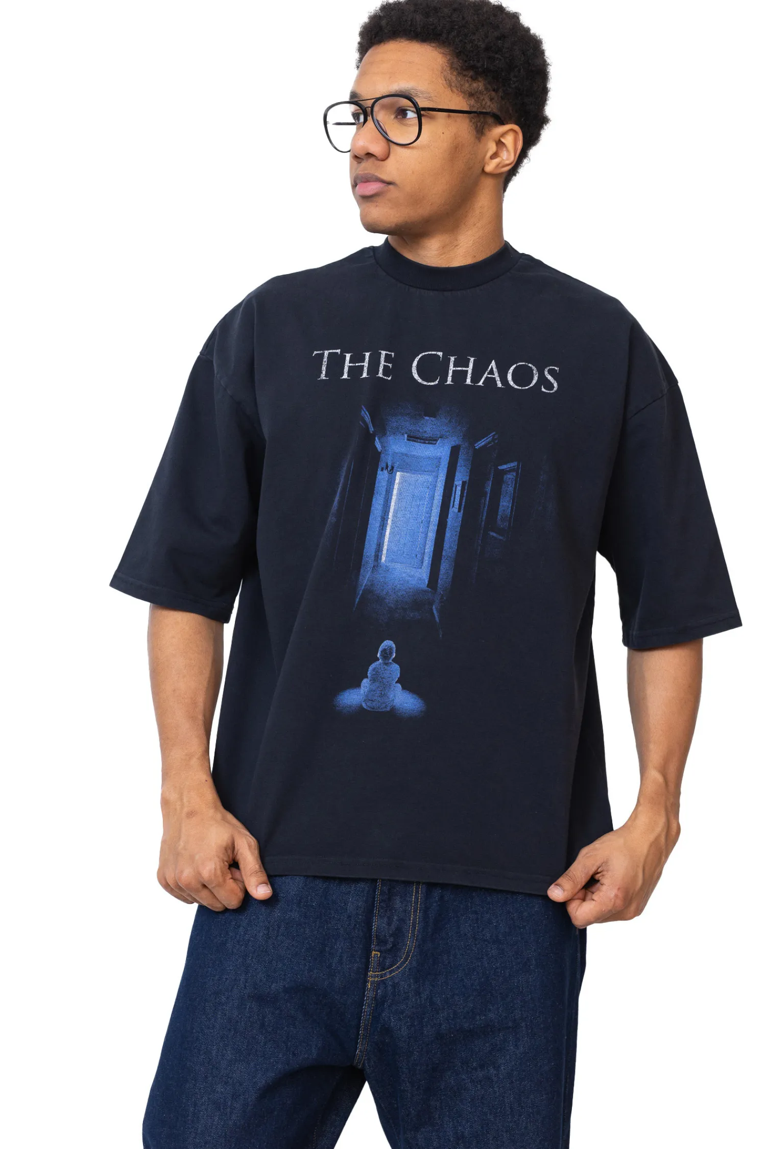 Koszulka Chaos Hautings Black to idealny wybór dla fanów mrocznego, tajemniczego stylu inspirowanego horrorami. Czarny t-shirt ozdobiony jest hipnotyzującą grafiką przedstawiającą niepokojącą scenę z ciemnym korytarzem i tajemniczym napisem „The Chaos”, co nadaje jej klimatu rodem z filmów grozy. Wykonana z wysokiej jakości bawełny, zapewnia komfort noszenia i świetnie komponuje się z ulicznymi stylizacjami w duchu streetwearu i gotyckiej estetyki.