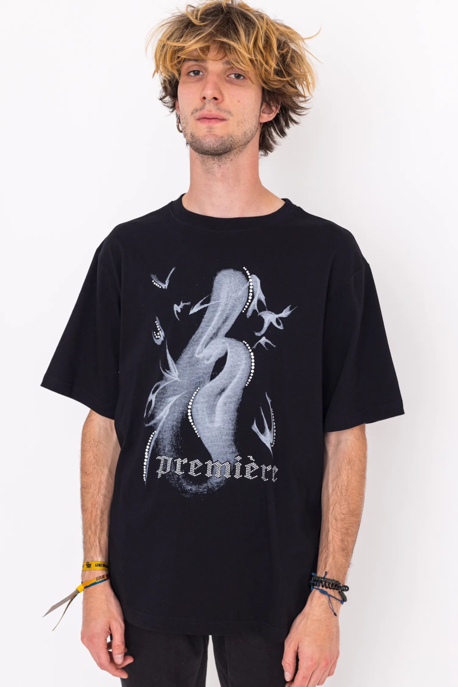 Oversizowa koszulka Première z nadrukiem z przodu oraz dodatkowym napisem i dodatkami z kryształków.