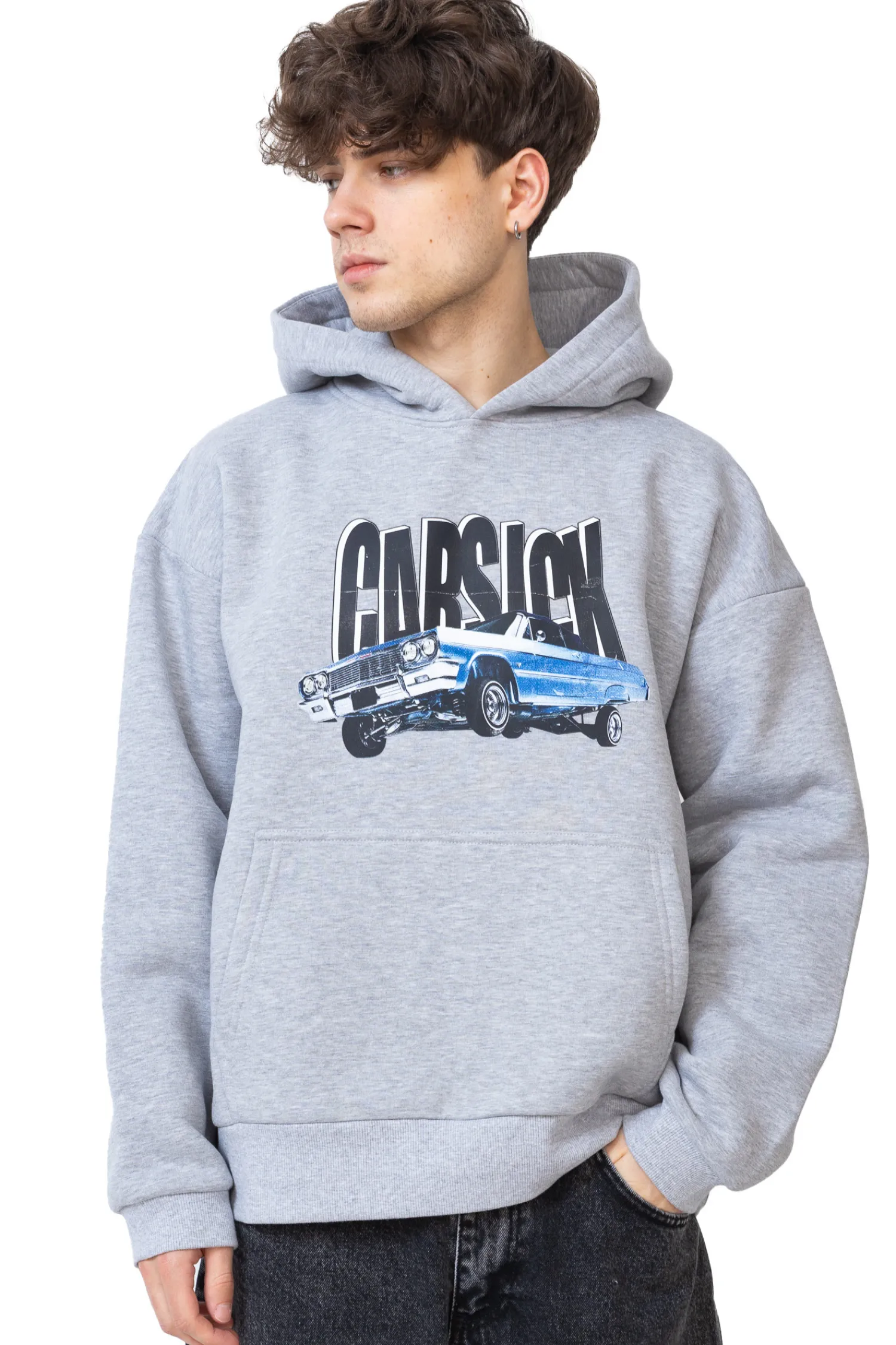 Bluza Z Kapturem Carsick IMPALA Grey to propozycja dla fanów oldschoolowych samochodów i streetwearu z charakterem. Na klatce piersiowej dominuje dynamiczny nadruk kultowego lowridera, który idealnie wpisuje się w klimat ulicznej mody. To nie tylko bluza – to manifest stylu życia inspirowanego wolnością, pasją i motoryzacją z duszą.