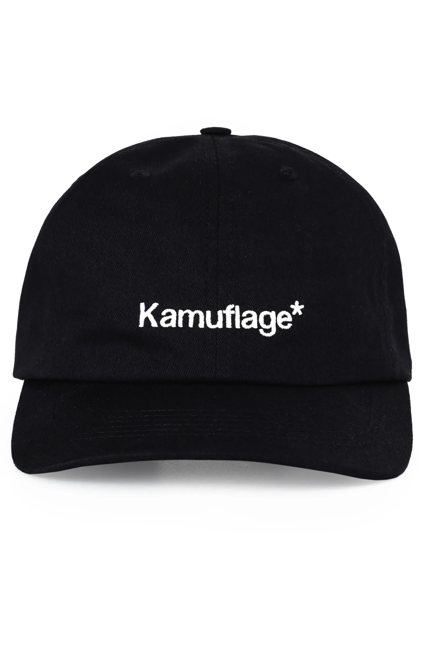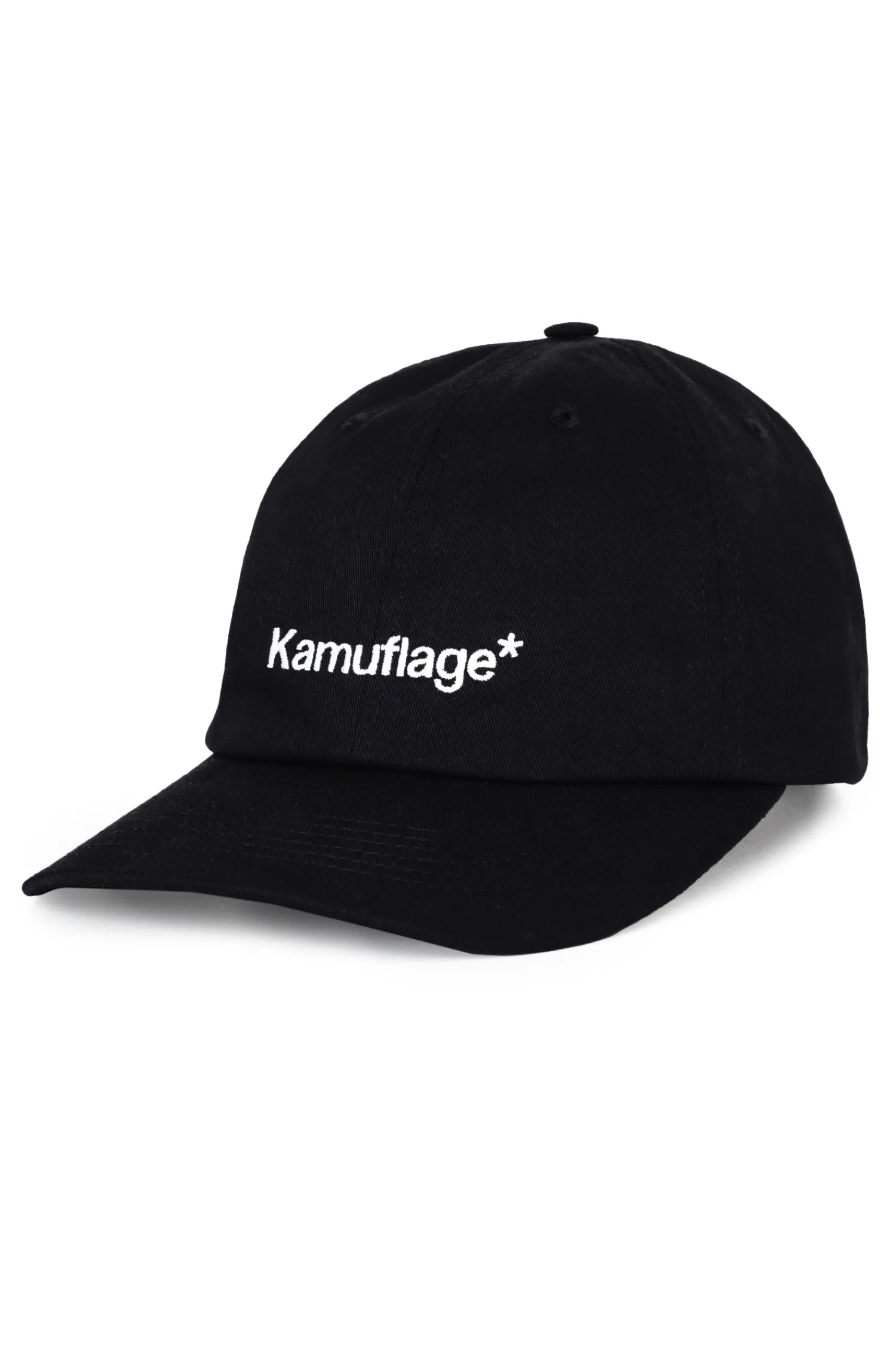 Czapka z daszkiem Kamuflage, w kolorze czarnym, z haftem na przodzie.