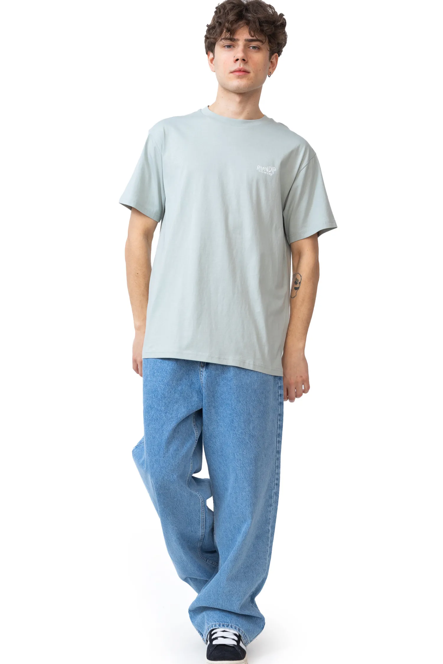 Koszulka Ripndip Great Wave Sage Grey RNDSPR25155 to unikalne połączenie klasycznej japońskiej sztuki z charakterystycznym humorem marki Ripndip. Na plecach znajduje się zmodyfikowana słynna „Wielka fala w Kanagawie”, gdzie zamiast fali widzimy białego kota. Wykonana z wysokiej jakości bawełny w delikatnym, pastelowym odcieniu, zapewnia nie tylko komfort noszenia, ale także oryginalny styl dla miłośników nietuzinkowej mody ulicznej.