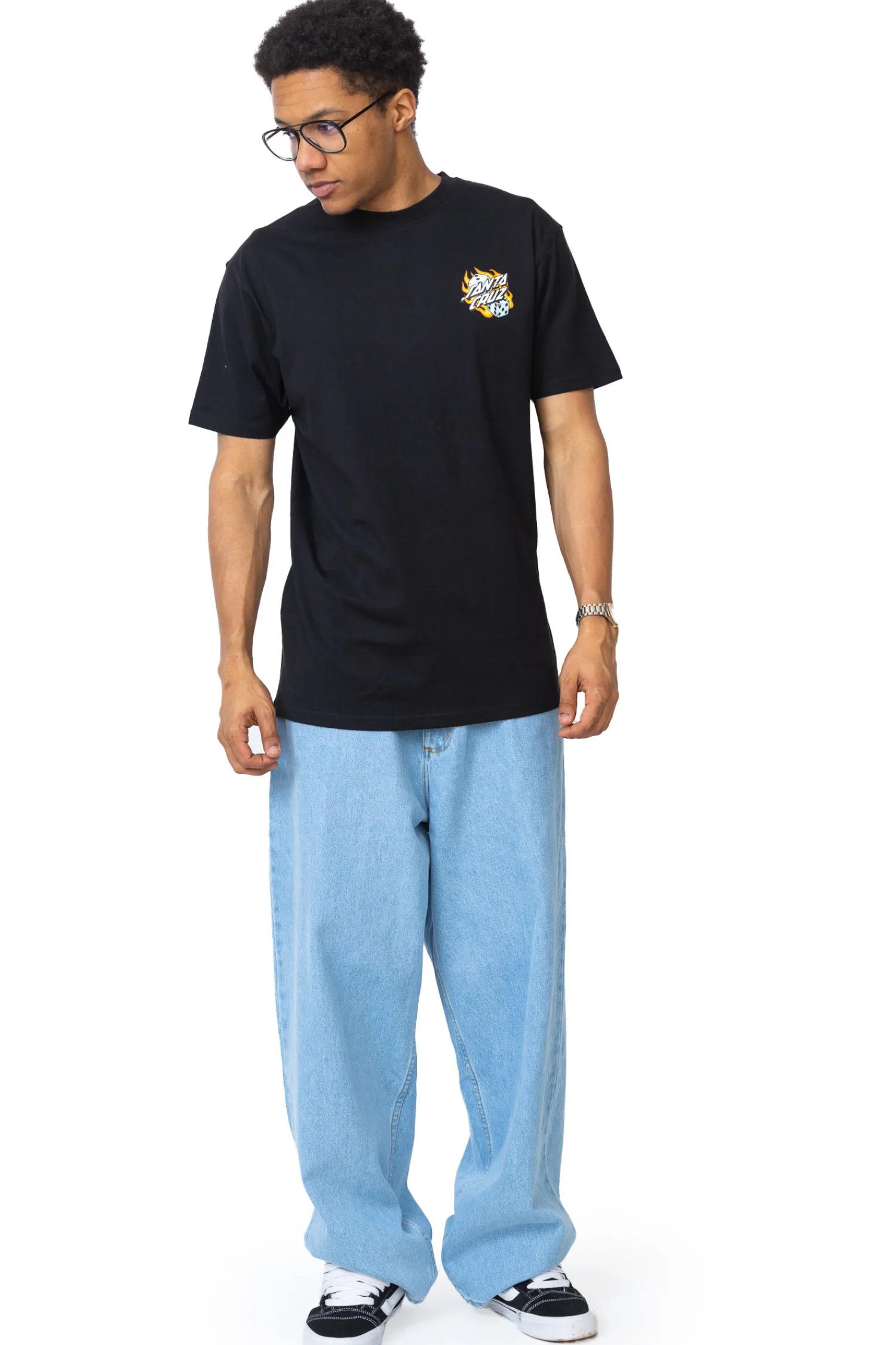 Koszulka Santa Cruz Flaming Dice Dot Chest Black to streetwearowa klasyka z charakterem. Czarny t-shirt przyciąga wzrok dynamicznym nadrukiem – płonące kości i logo Santa Cruz nadają mu energetyczny, buntowniczy vibe. To idealna propozycja dla fanów deskorolki, miejskiego stylu i oryginalnego looku.