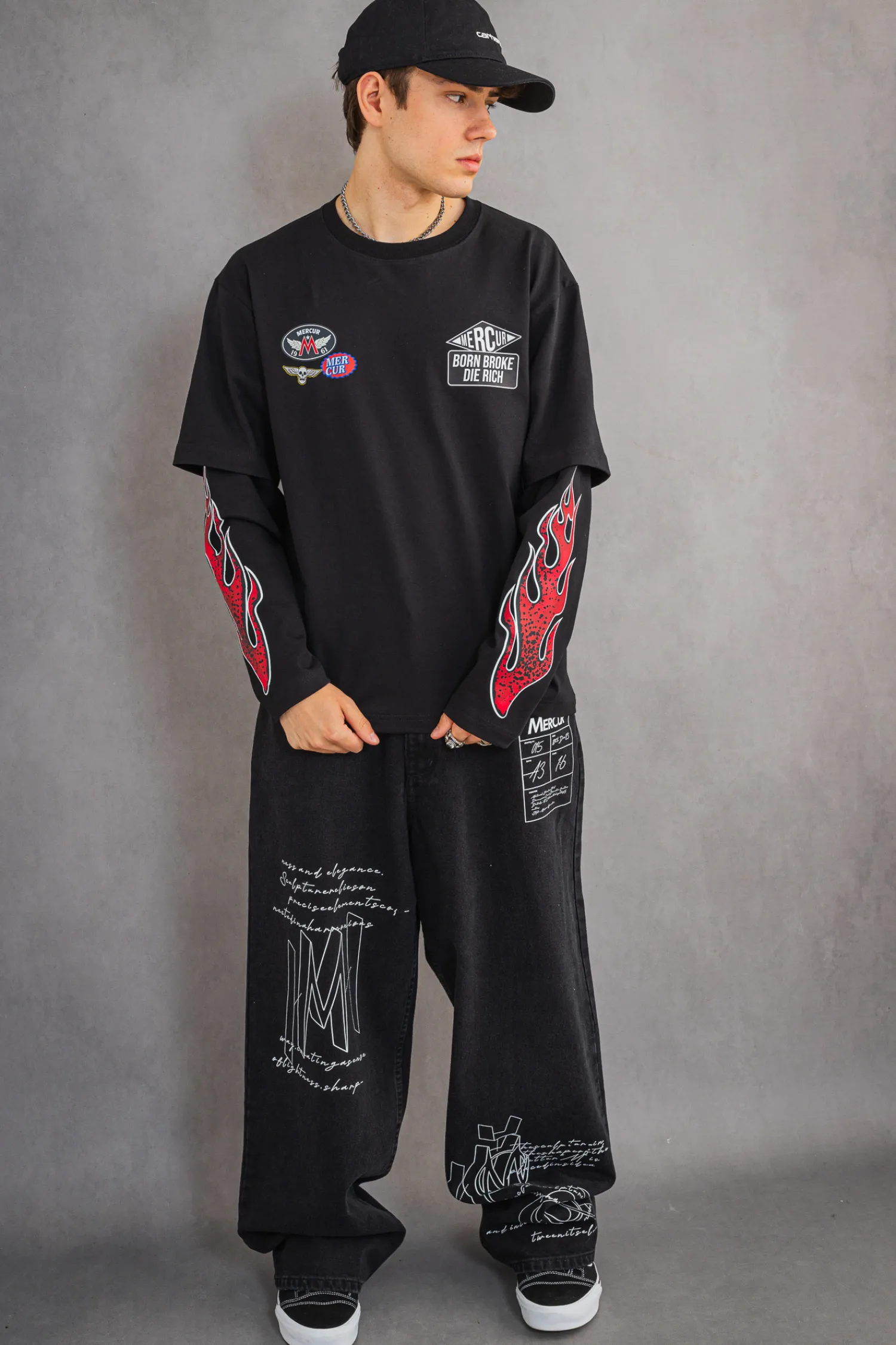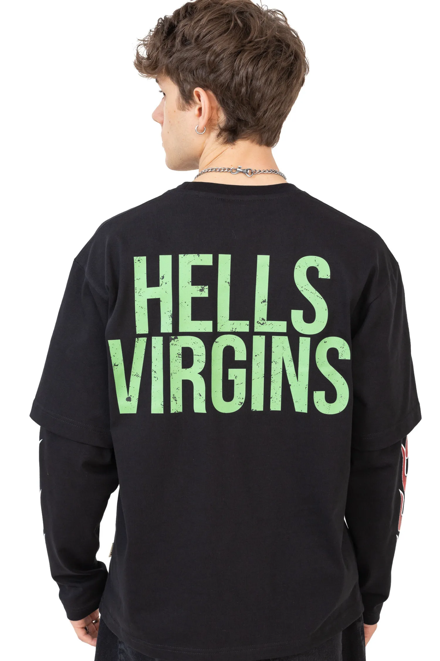 Longsleeve Mercur Patch Black wyróżnia się nie tylko jakością wykonania, ale również unikalnym designem i wyrazistym przekazem. Czarny longsleeve zdobi zielony napis „HELLS VIRGINS”, który przyciąga uwagę i dodaje charakteru. Dodatkowym elementem są oryginalne nadruki na rękawach w kształcie płomieni, które dodają dynamiki i podkreślają buntowniczy charakter koszulki.