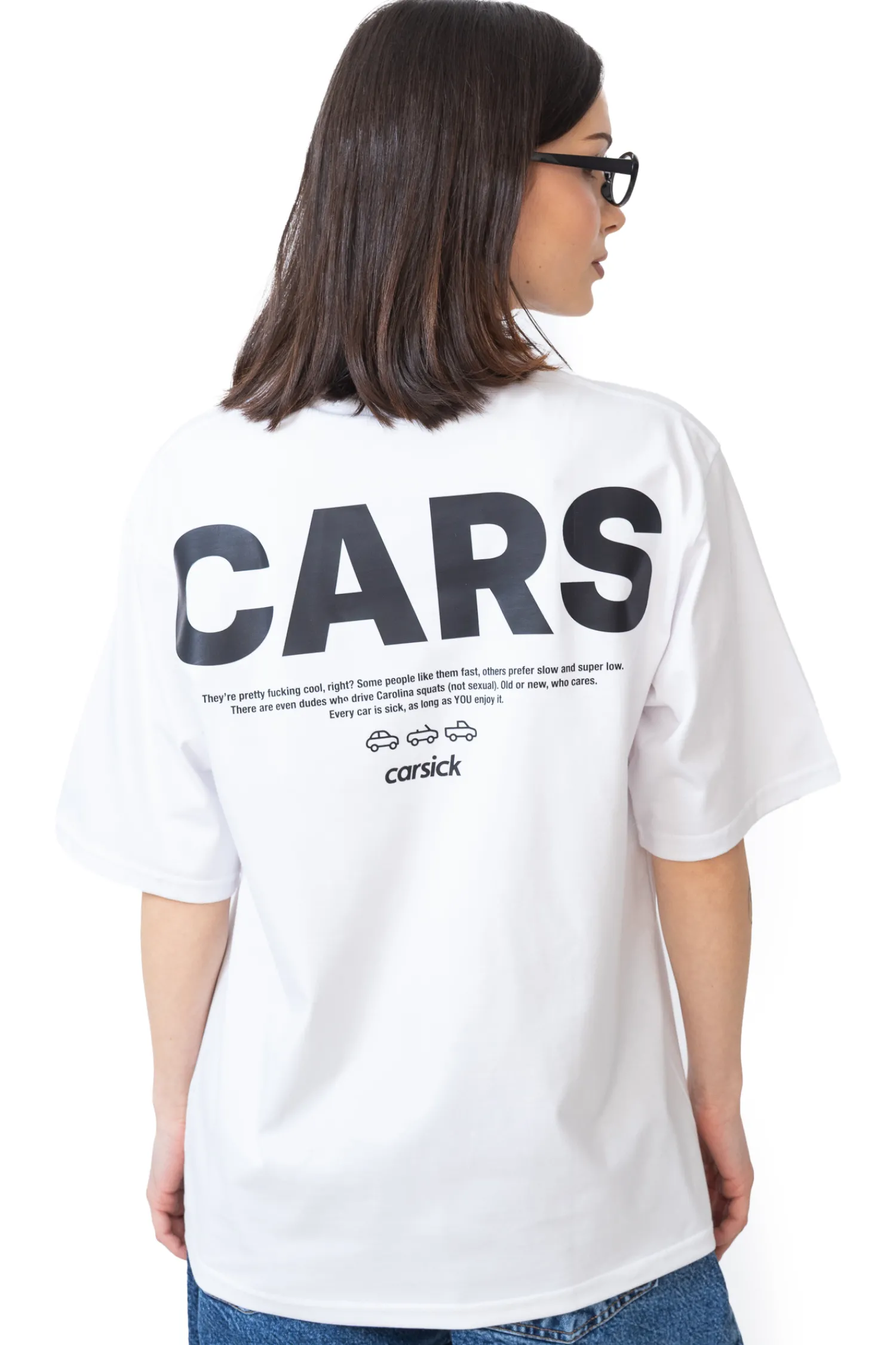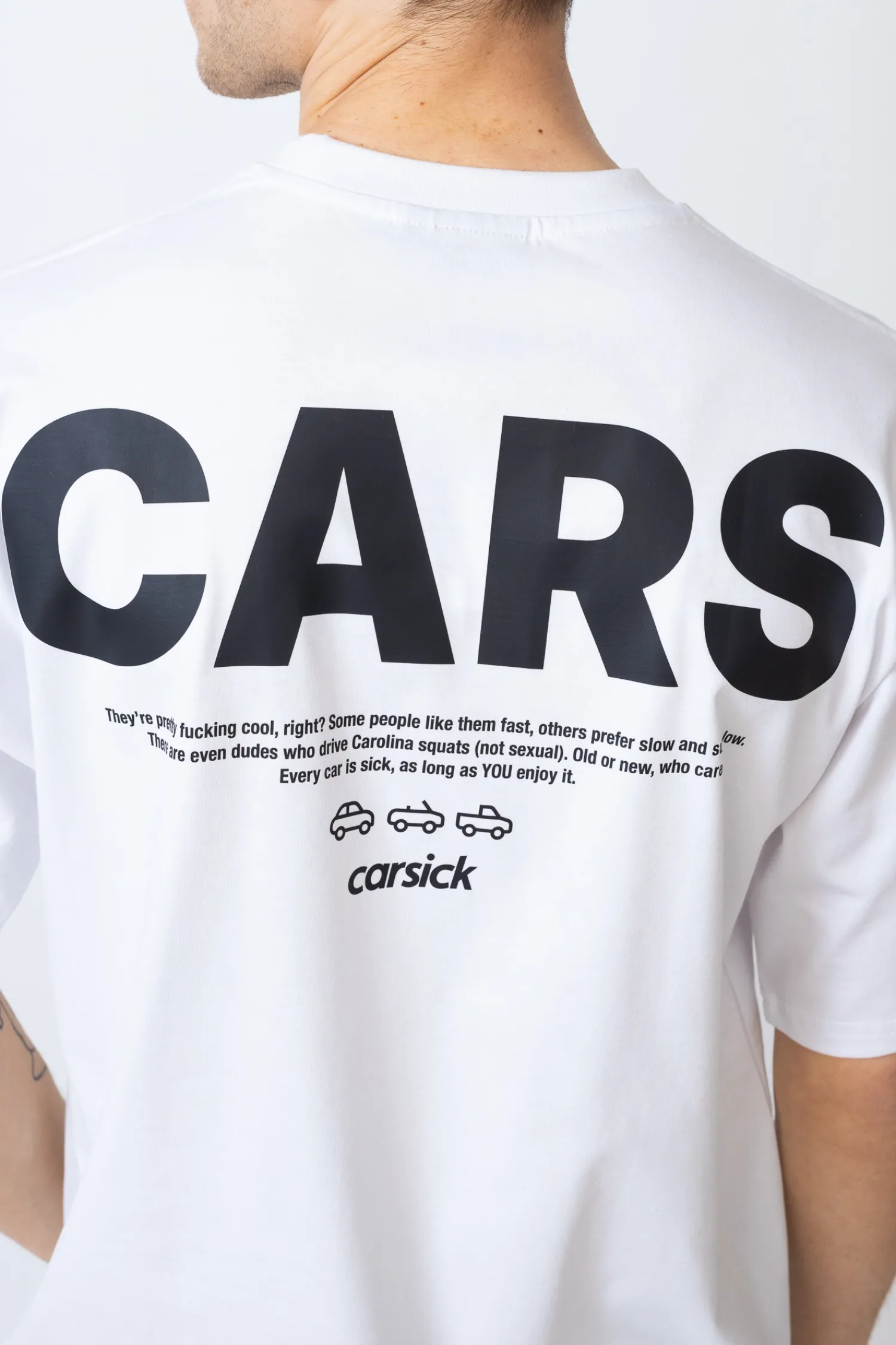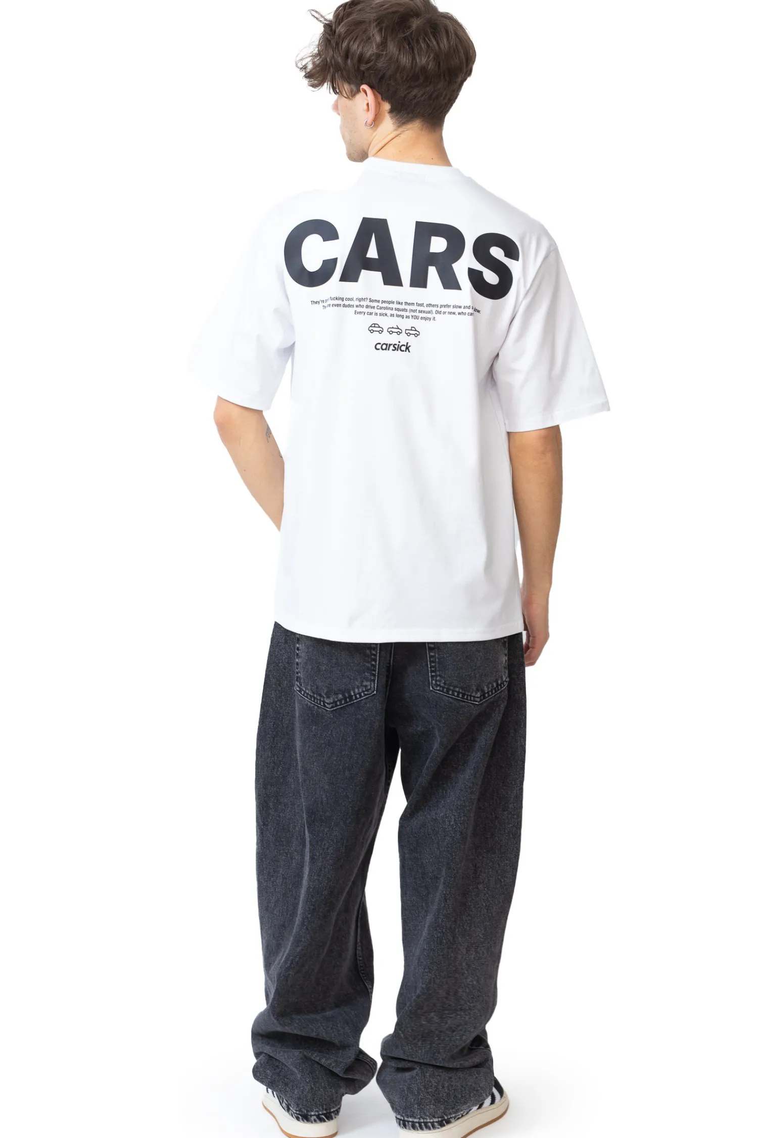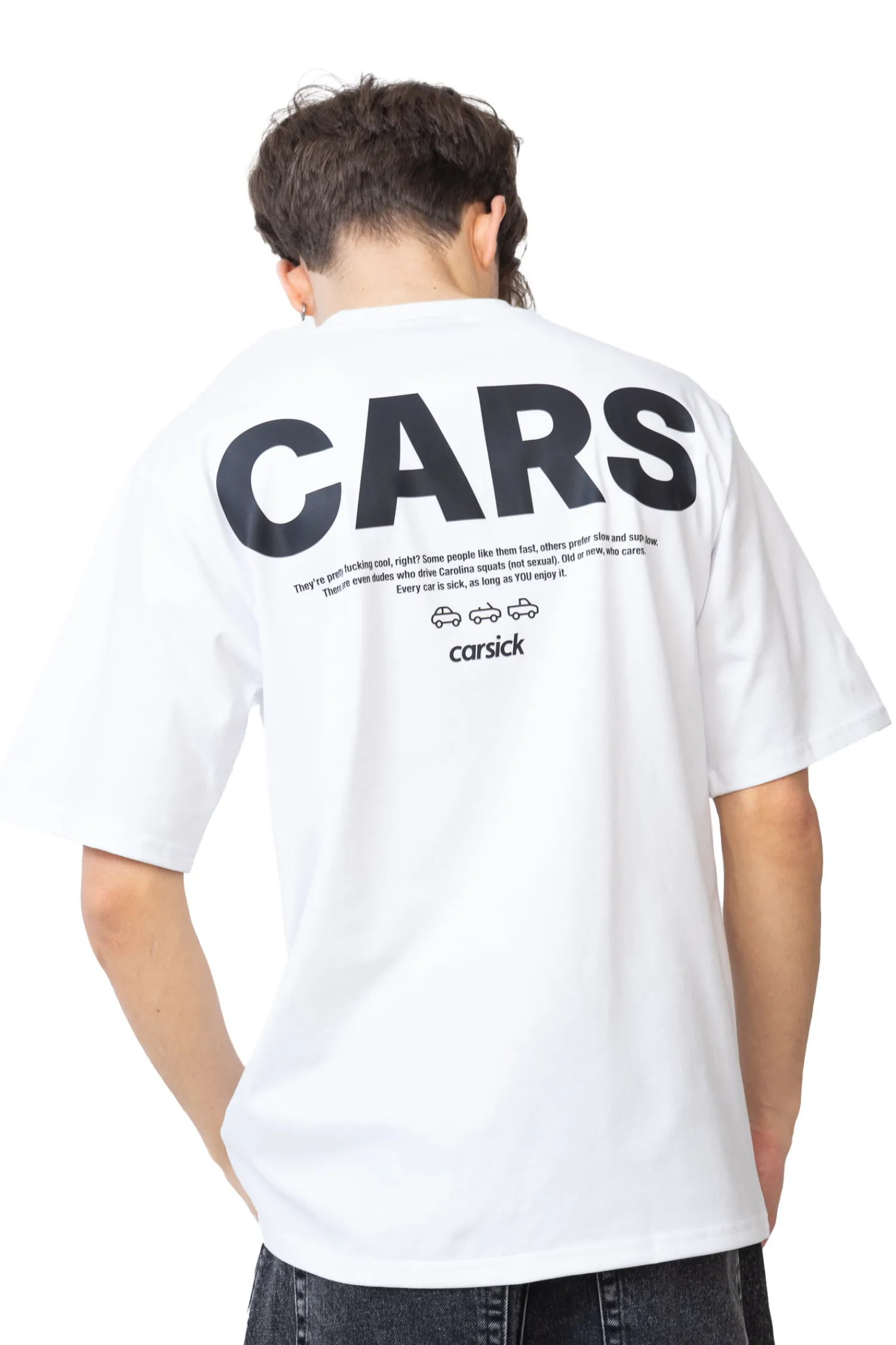 Koszulka Carsick Community White to wyrazisty manifest dla każdego, kto kocha samochody – bez względu na ich rodzaj czy styl. Z tyłu znajduje się duży nadruk „CARS” oraz tekst celebrujący różnorodność motoryzacyjnych zajawkowiczów. Biały t-shirt o luźnym kroju świetnie wpisuje się w codzienny streetwear i pozwala głośno wyrazić swoją pasję.