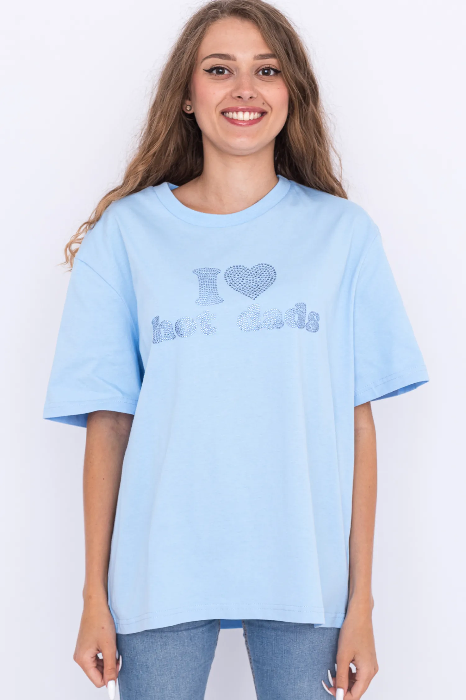Koszulka 2005, w kolorze niebieskim, z logotypem ze sztucznych kryształków na przodzie.