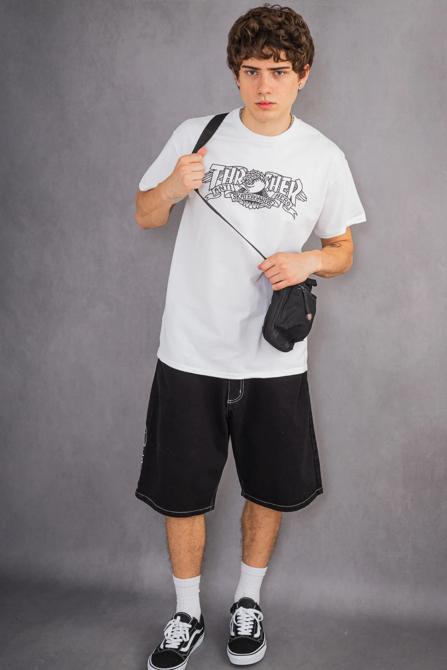 - Grafika Thrasher Magazine x Antihero Skateboards na środku klatki piersiowej