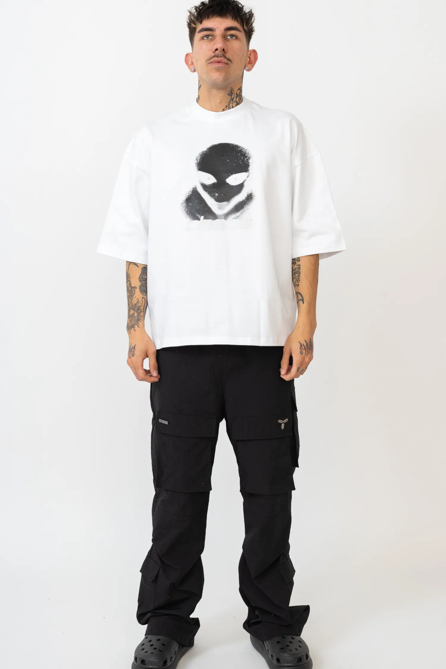 T-shirt Chaos Alien Distressed został zaprojektowany z myślą o oryginalności. Kontrastowy czarny motyw Chaos Alien na białym tle przyciąga wzrok i wyróżnia Cię z tłumu, dzięki czemu czujesz się pewnie i stylowo. Wykonana z wysokiej jakości materiałów, koszulka zapewnia długotrwałą trwałość i zachowuje swój świetny wygląd nawet po wielu praniach. To inwestycja, która będzie Ci towarzyszyć przez wiele sezonów. Chaos Alien Distressed to nie tylko zwykła koszulka, to wyrazisty element Twojej garderoby. Doskonale pasuje do jeansów, spodni czy spódnic, dodając Twoim outfitom niepowtarzalnego charakteru.