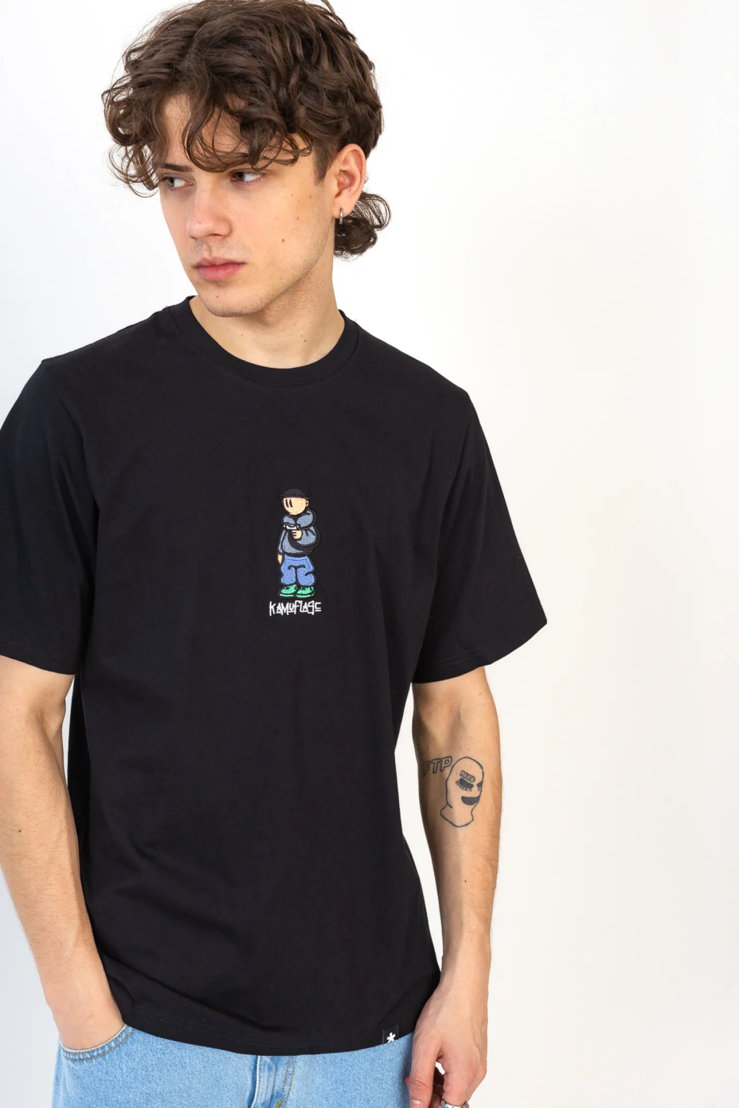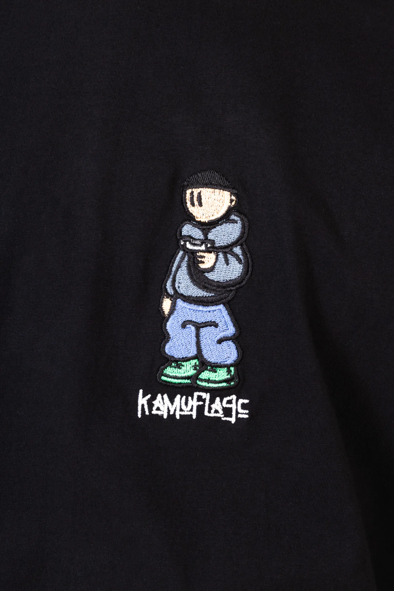 Koszulka Kamuflage Slanger Black to kwintesencja miejskiego stylu dla osób poszukujących oryginalności i wygody. Czarny kolor t-shirtu stanowi idealne tło dla charakterystycznego haftu postaci, który dodaje ubraniu niebanalnego charakteru. Haft umieszczony w centralnej części koszulki przyciąga wzrok i sprawia, że ten model wyróżnia się na modowej scenie. Koszulka wykonana jest z materiału najwyższej jakości, co gwarantuje komfort noszenia przez cały dzień. Odporna na częste pranie, zachowuje swój kształt i kolor. Ten modny element garderoby jest idealny dla osób ceniących sobie miejski szyk i indywidualność.