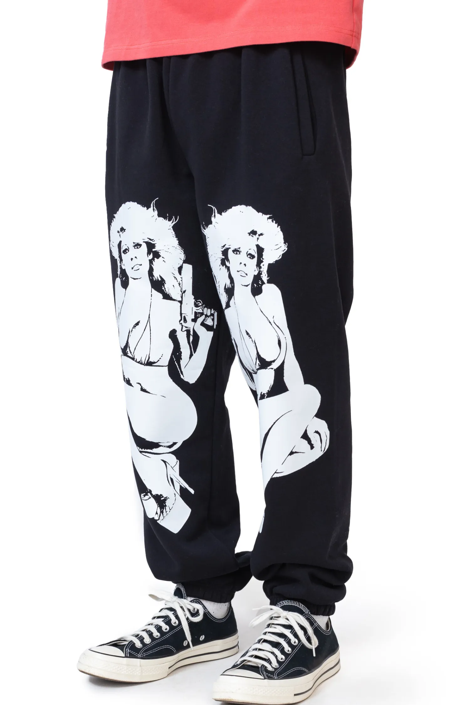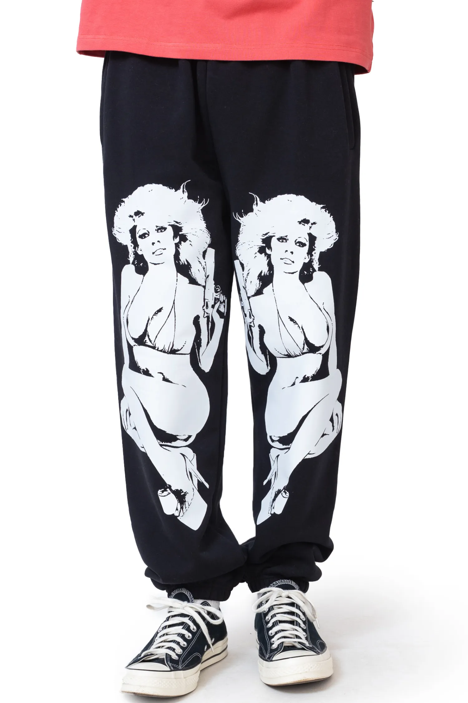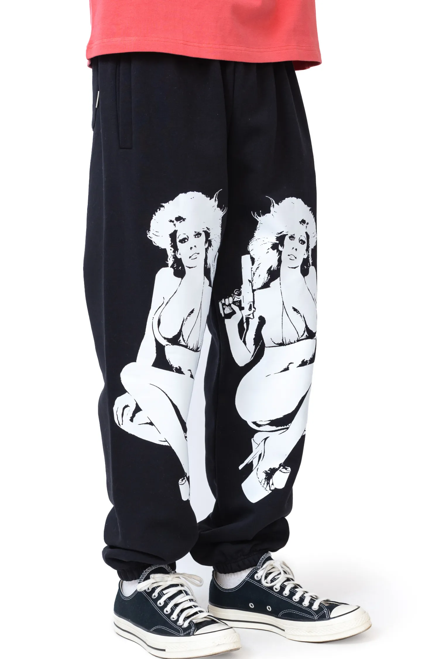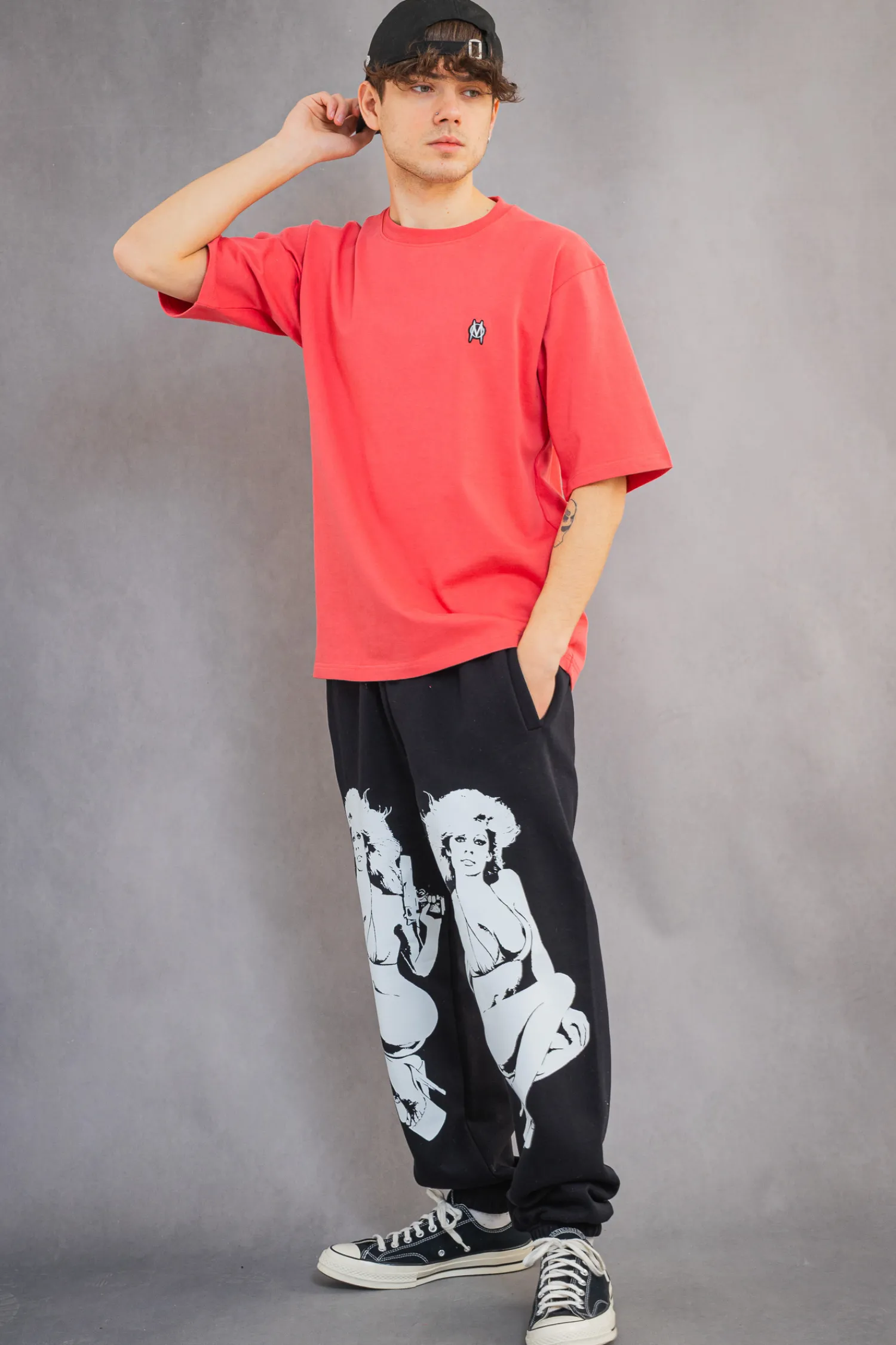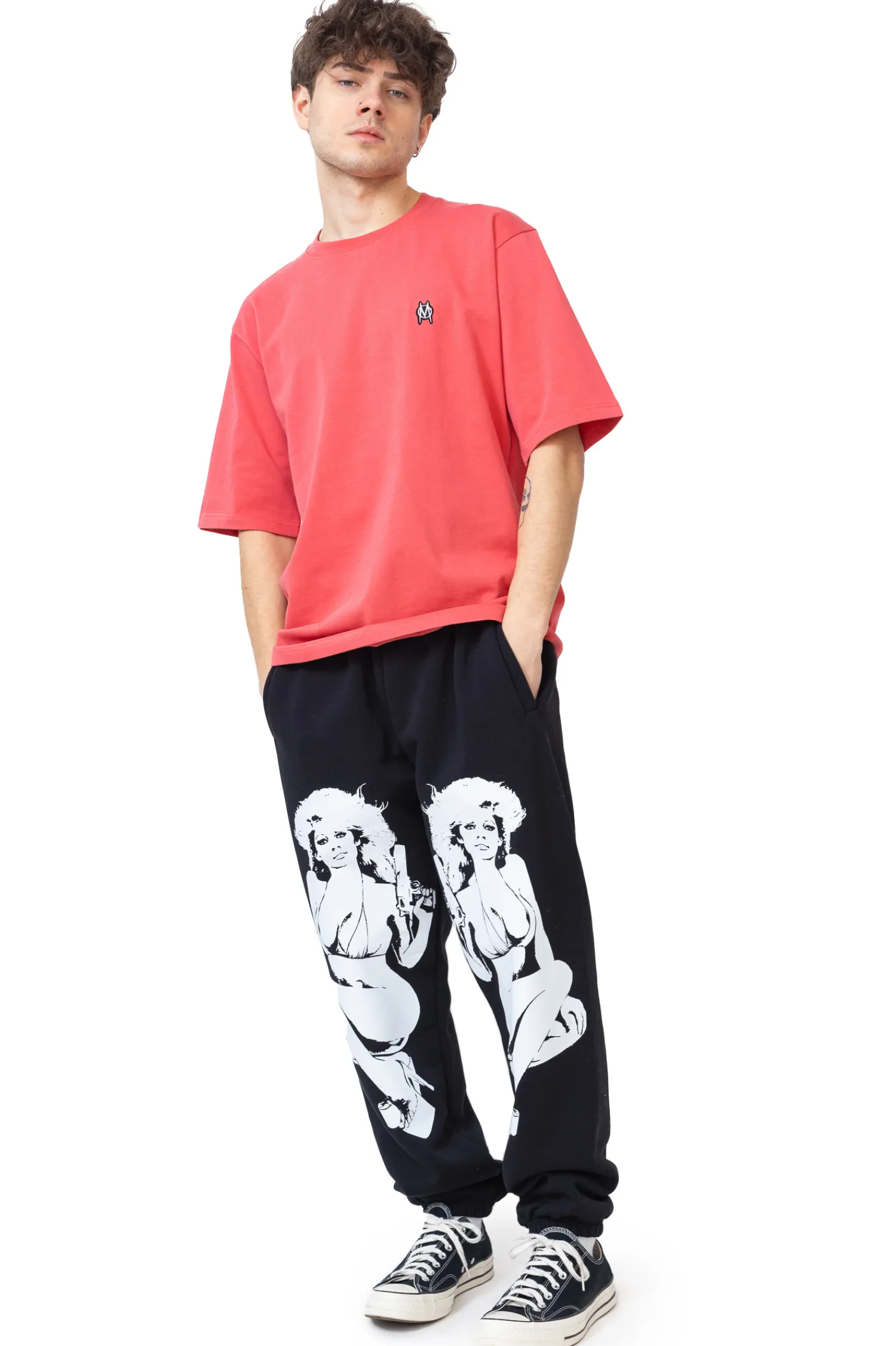 Spodnie dresowe Mercur Angels Black to odważna propozycja dla fanów streetwearu, łącząca wygodę z wyrazistym designem. Czarna baza ozdobiona dużym, kontrastowym nadrukiem nadaje im unikalnego charakteru. Wykonane z wysokiej jakości materiału, gwarantują komfort noszenia i świetnie komponują się z luźnymi stylizacjami miejskimi.