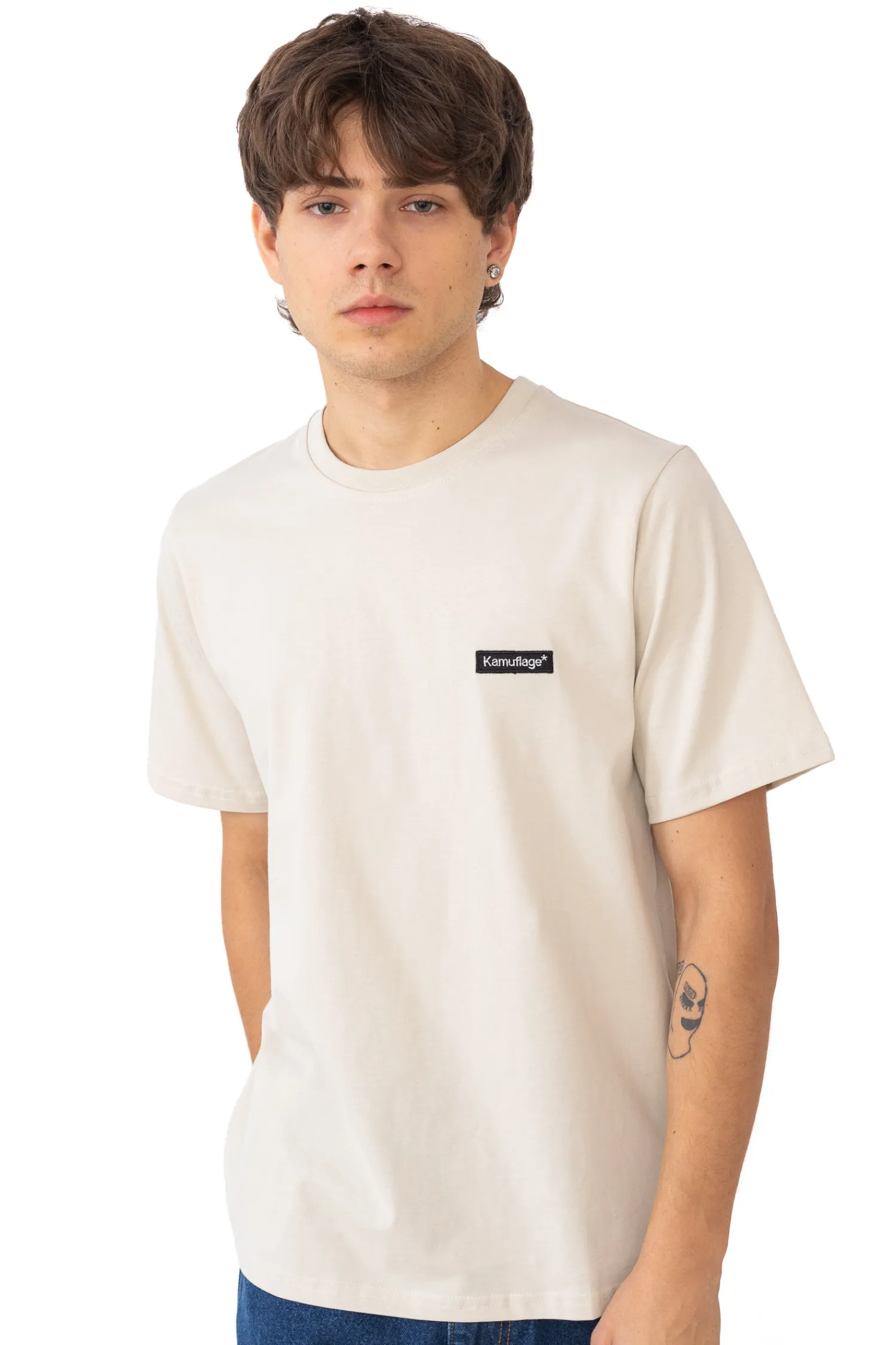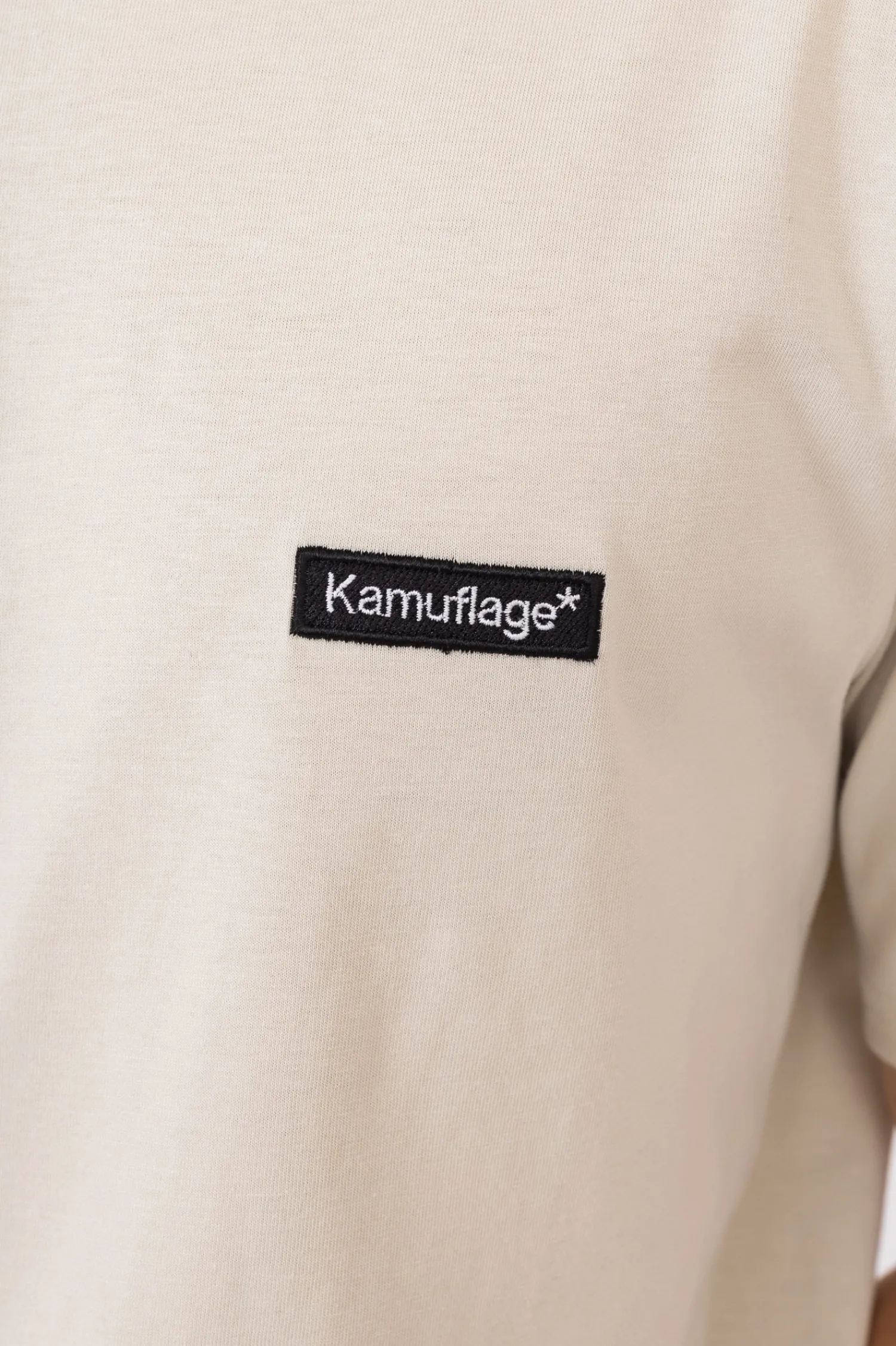 Koszulka Kamuflage, w kolorze beżowym, z naszywką na przodzie.