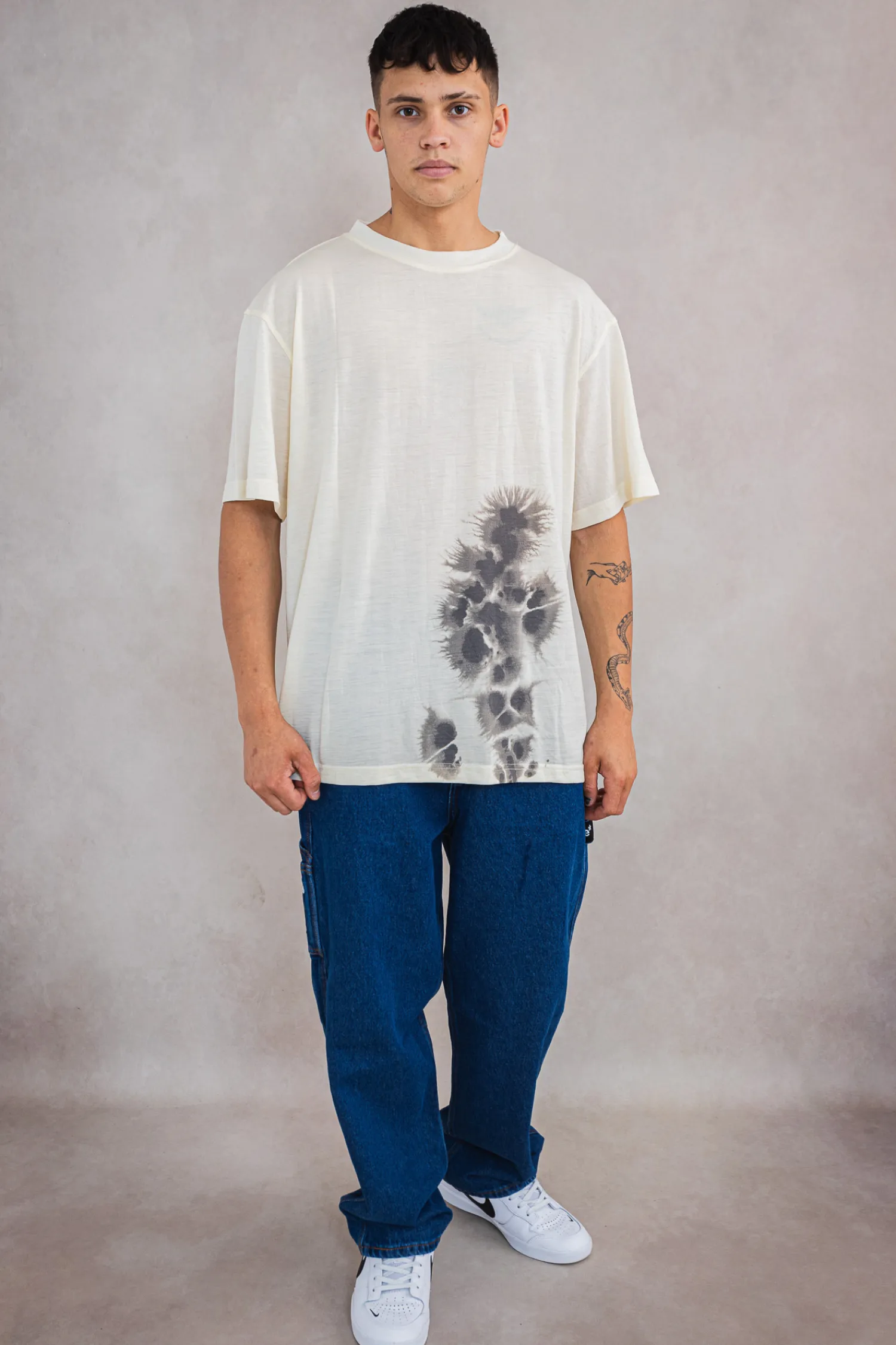 - Dwie jodełkowe metki z tyłu koszulki