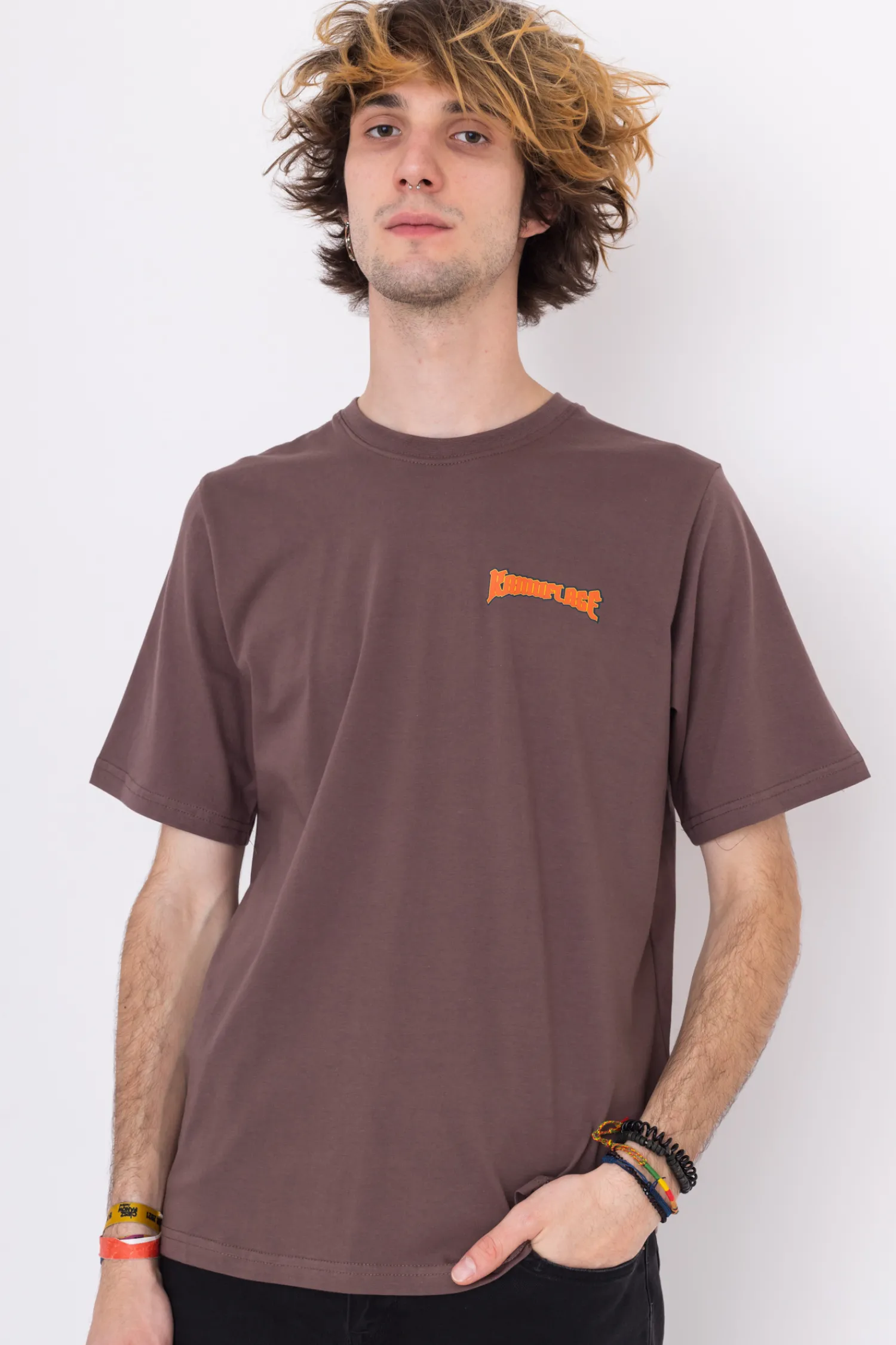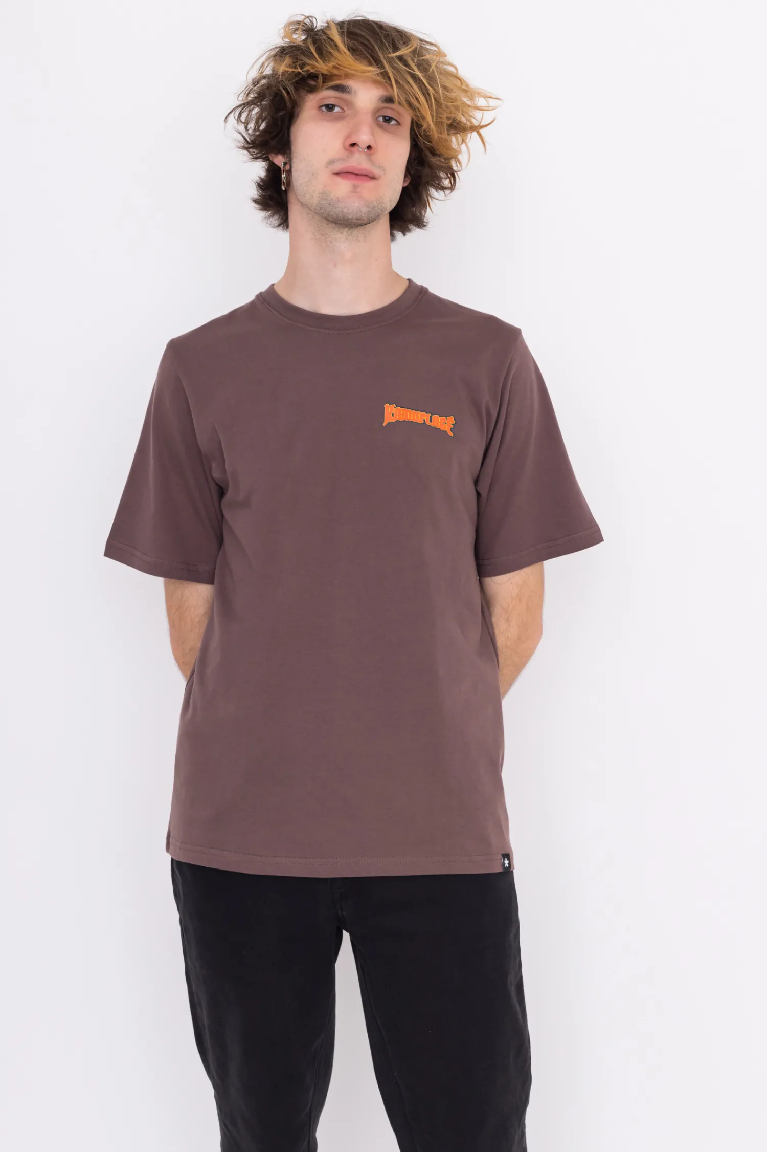 Koszulka Kamuflage, w kolorze brązowym, z nadrukiem na przodzie.