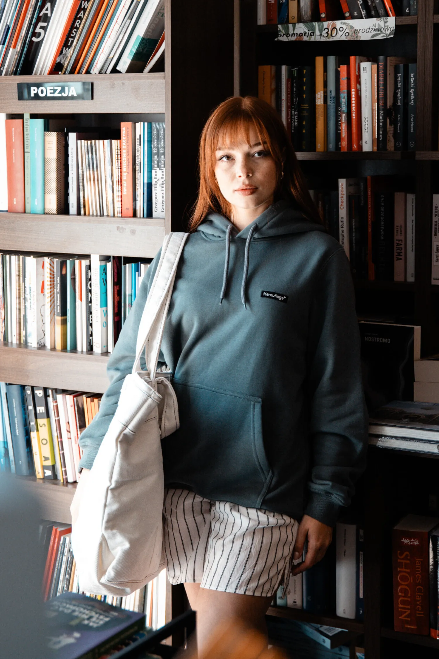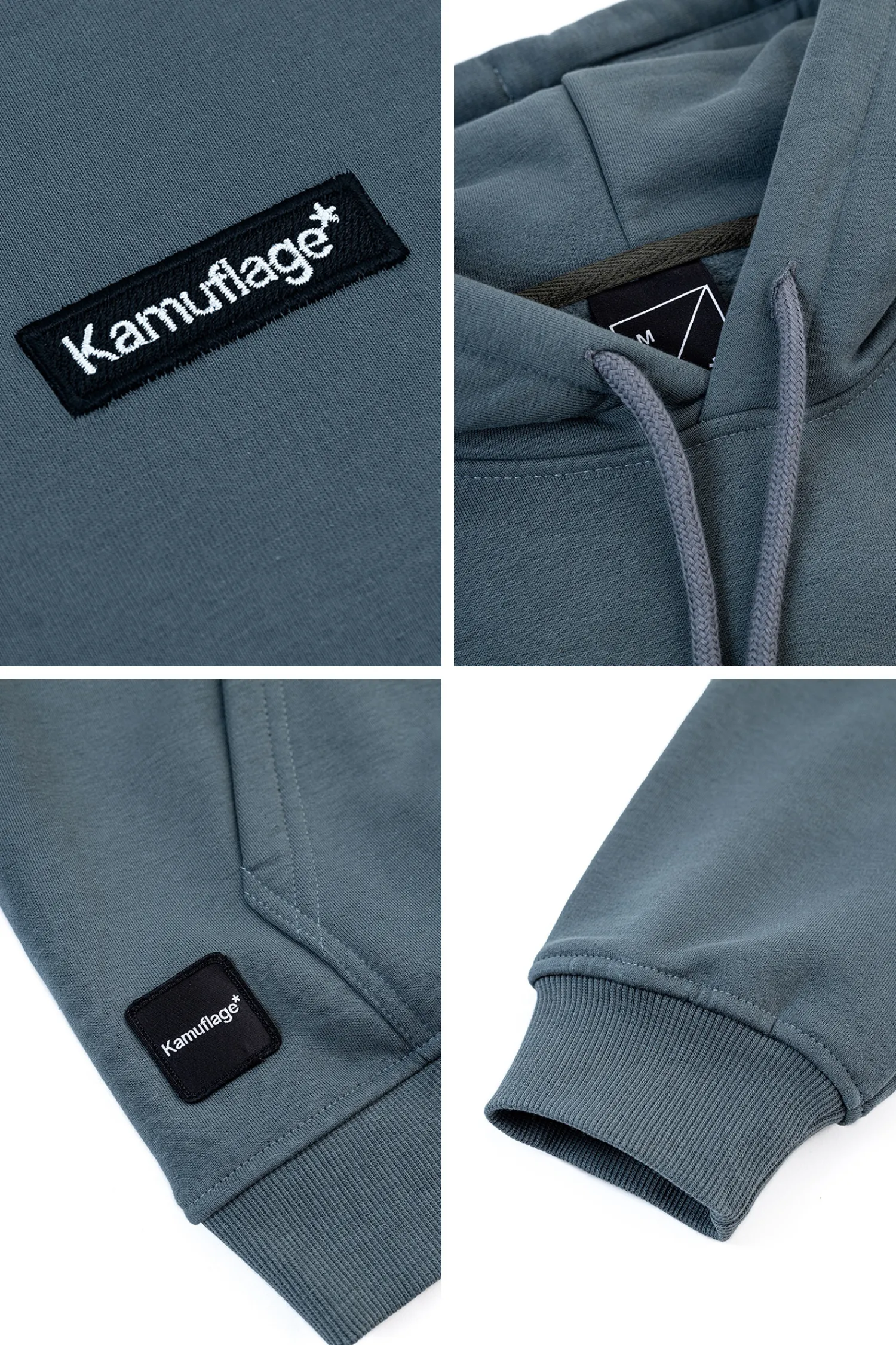 - Kieszeń kangurka na przodzie z żakardową naszywką