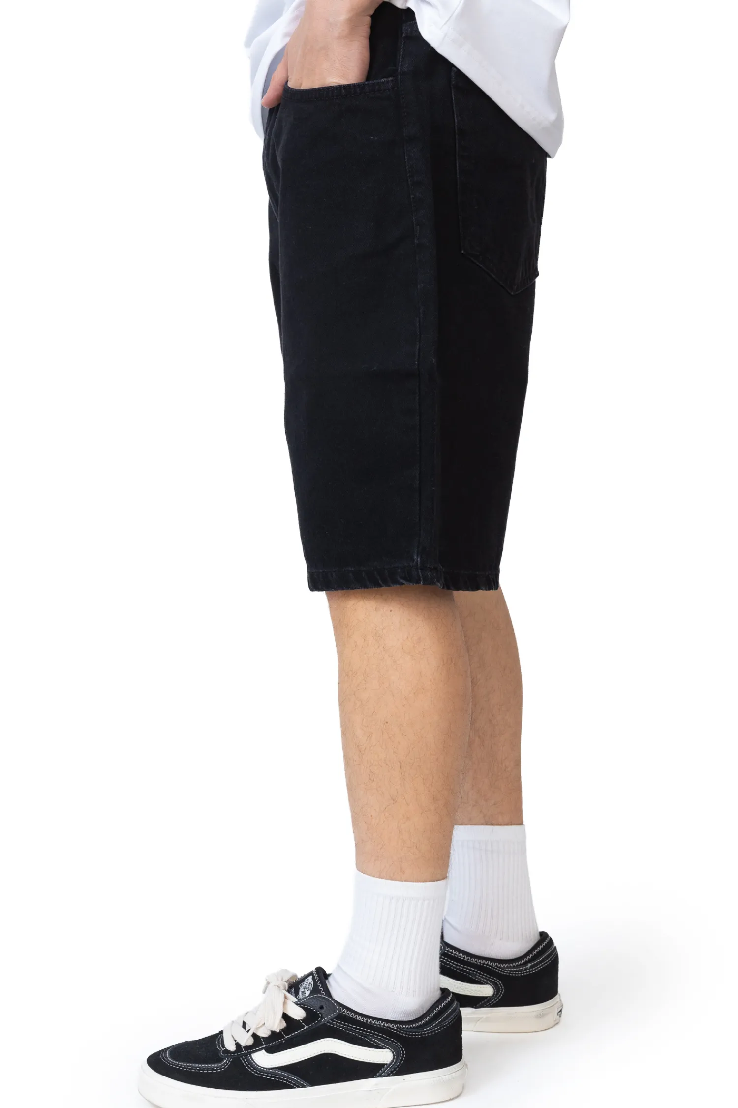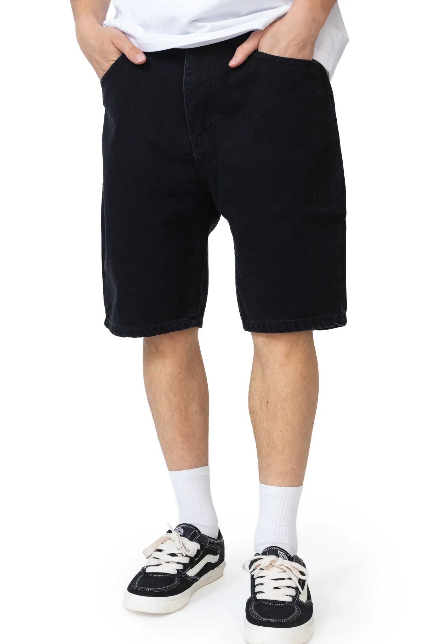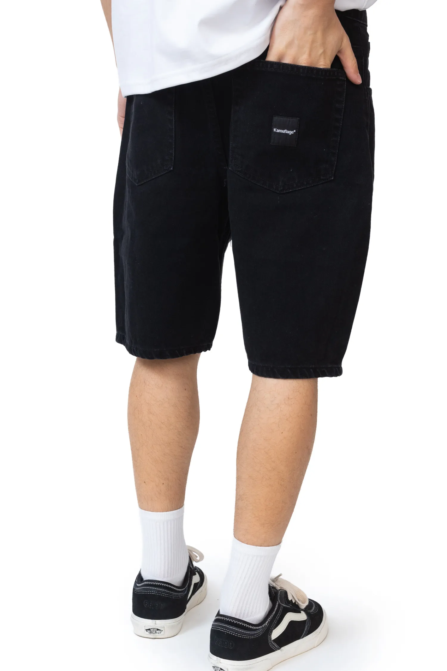 Szorty Kamuflage Biggie Black to idealny wybór na nadchodzące ciepłe dni. Ich klasyczny, aczkolwiek nowoczesny design sprawia, że są one świetnym dodatkiem do casualowych stylizacji. Wykonane z wysokiej jakości, wytrzymałego materiału jeansowego, gwarantują komfort noszenia oraz trwałość. Krój szortów jest luźny, co zapewnia swobodę ruchów. Szorty posiadają klasyczny układ pięciu kieszeni – dwie z przodu, dwie z tyłu oraz mniejszą kieszonkę na monety. Z tyłu znajduje się również charakterystyczna, czarna naszywka z logo Kamuflage, co dodaje im unikalności. Zapinane są na zamek i guzik.