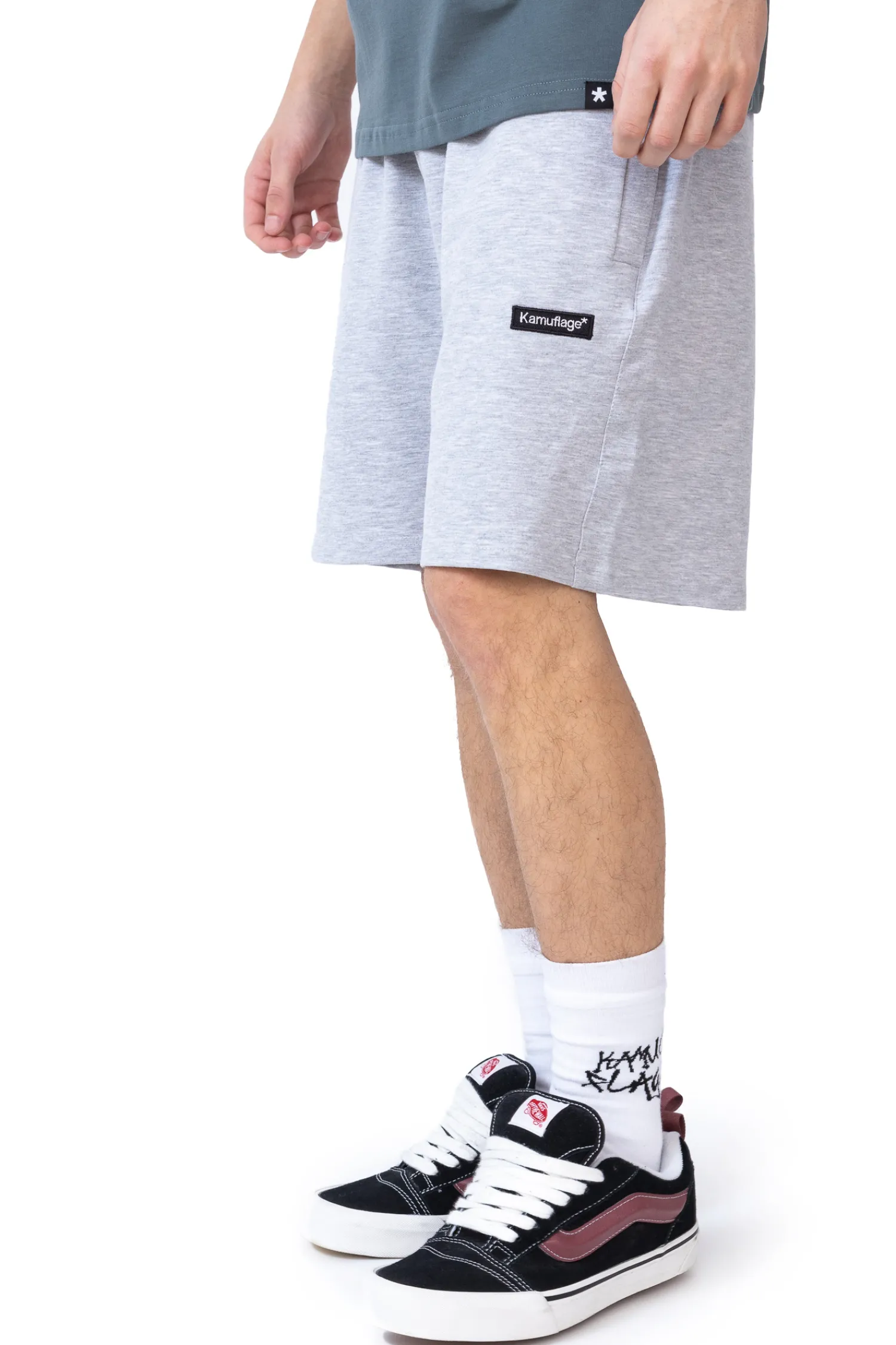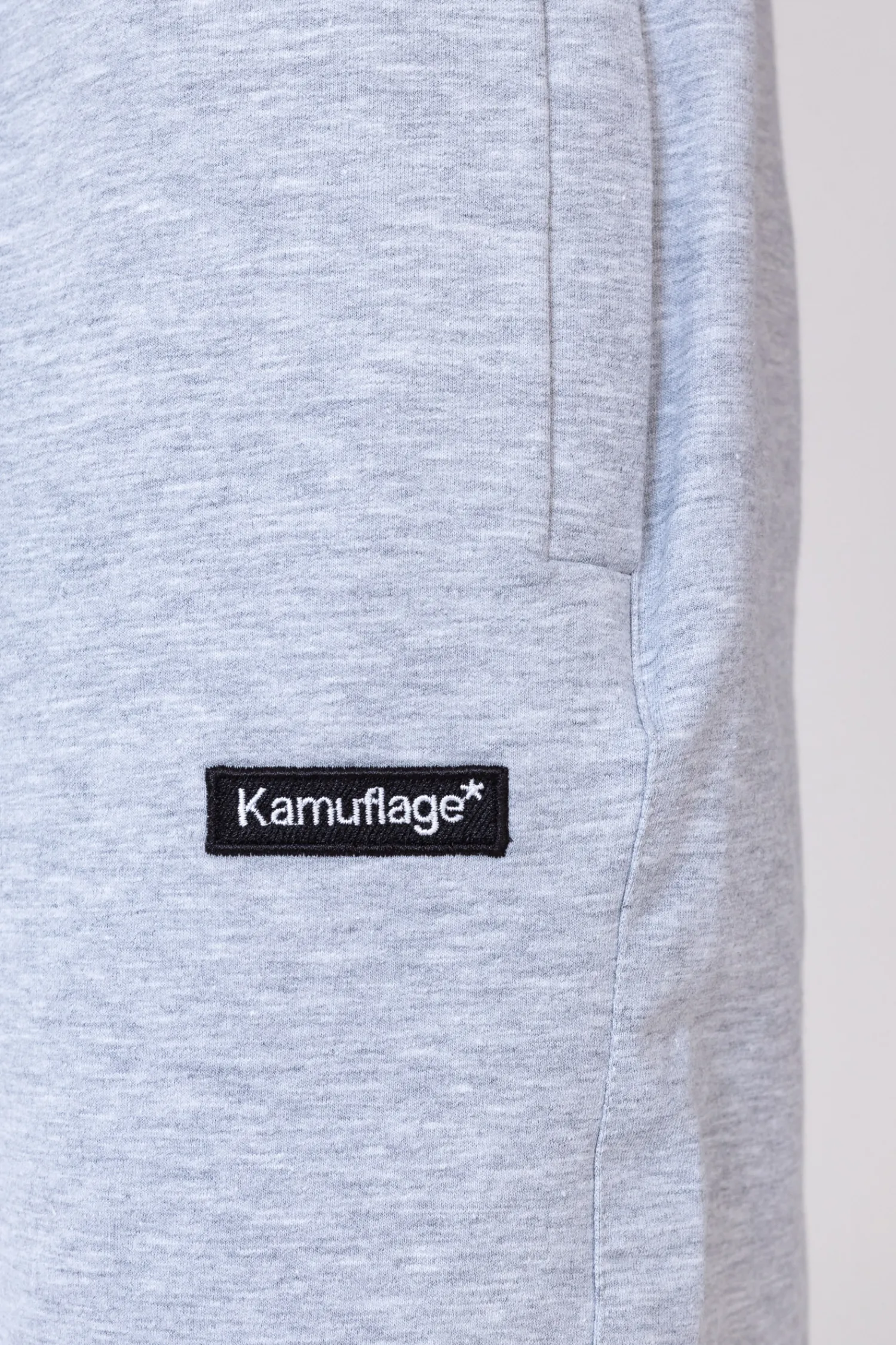 Spodenki dresowe Kamuflage Minilogo w kolorze szarym, z małą naszywką na nogawce. Szorty materiałowe są przyjemne w dotyku oraz idealnie sprawdzą się w ciepłe dni.