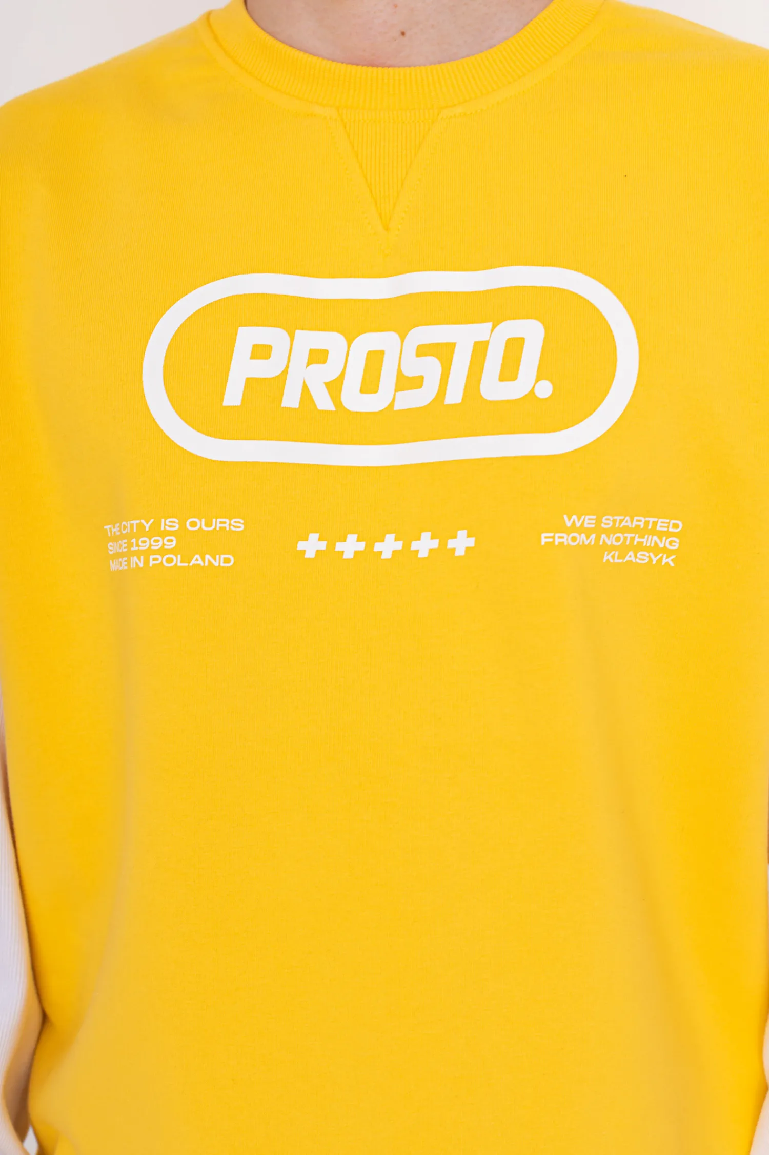 Bluza Prosto bez kaptura, z nadrukiem na przodzie w kolorze żóltym.
