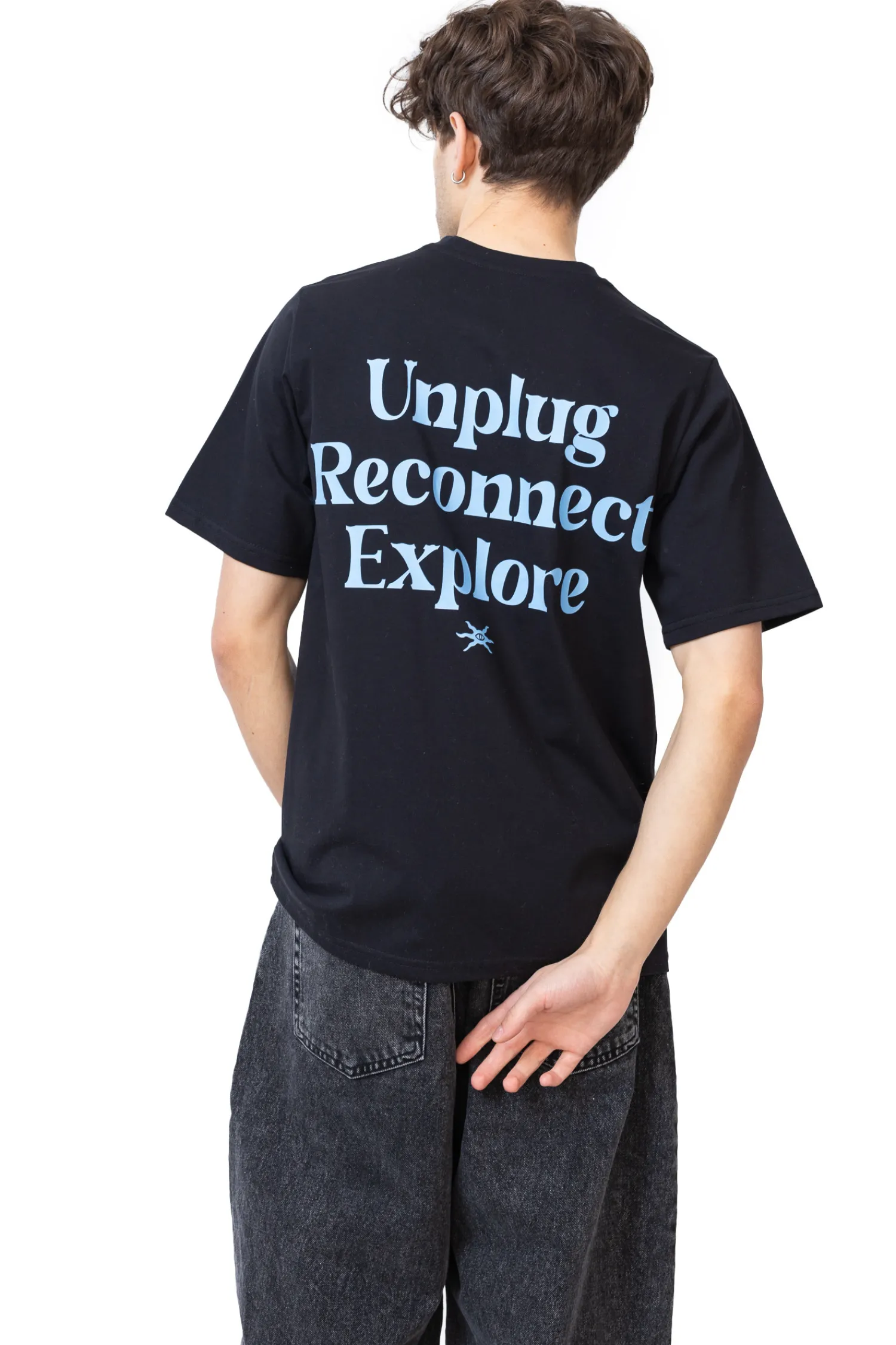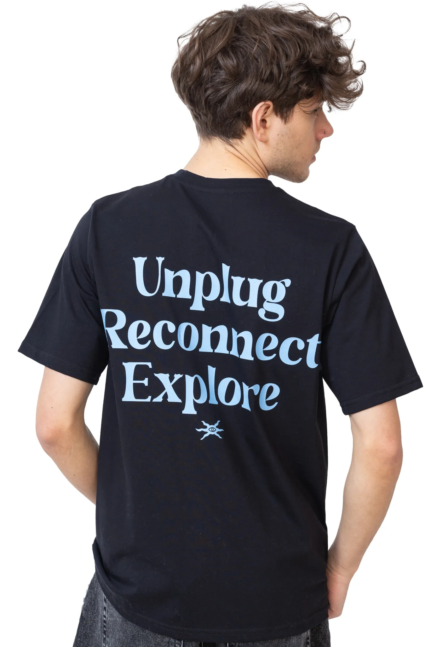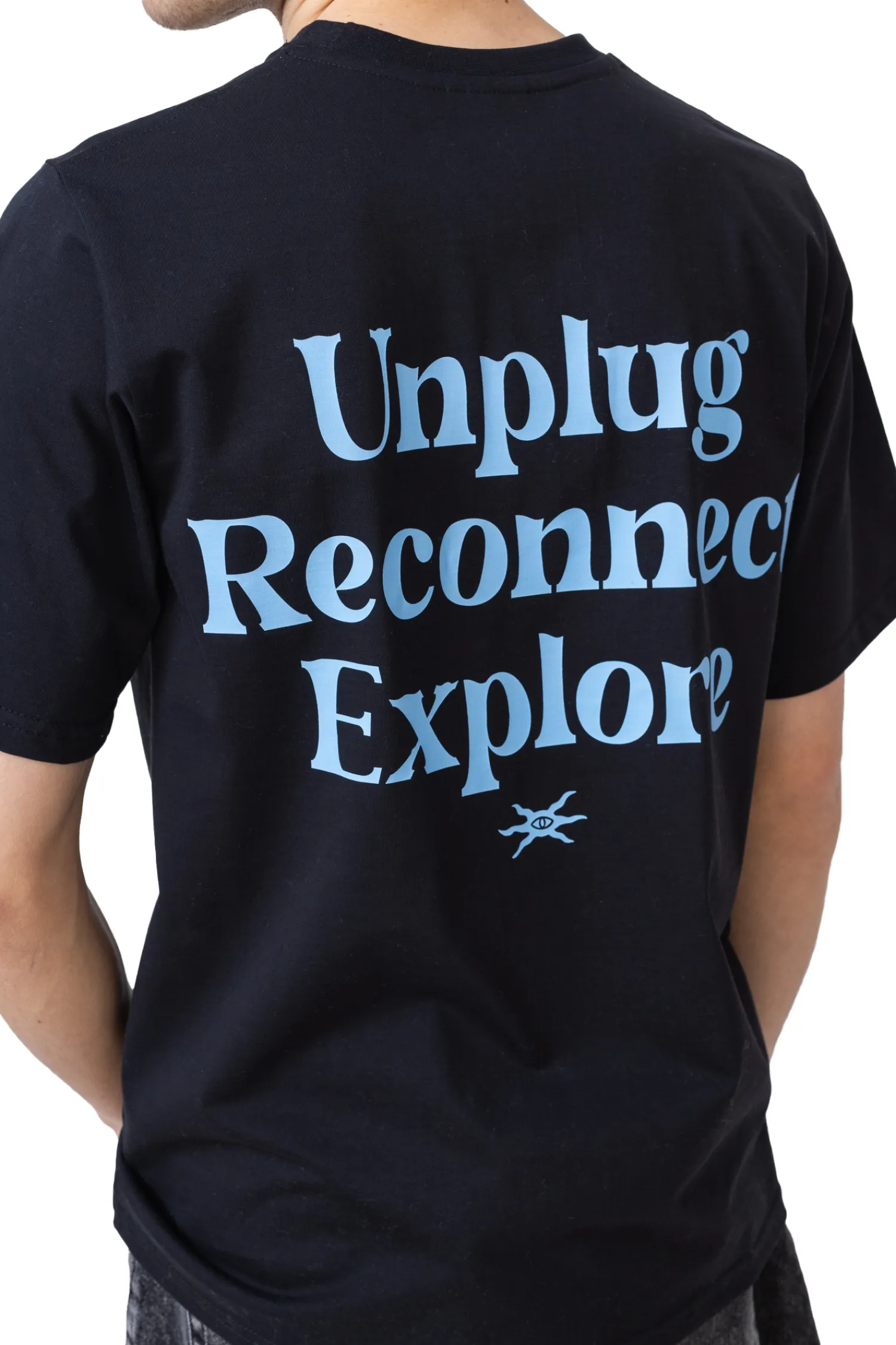 Koszulka Palto Explore Black to minimalistyczna propozycja, wykonana z wysokiej jakości bawełny w klasycznej czerni. Na plecach wyróżnia się niebieski nadruk z motywującym hasłem, zachęcającym do oderwania się od technologii i odkrywania świata.