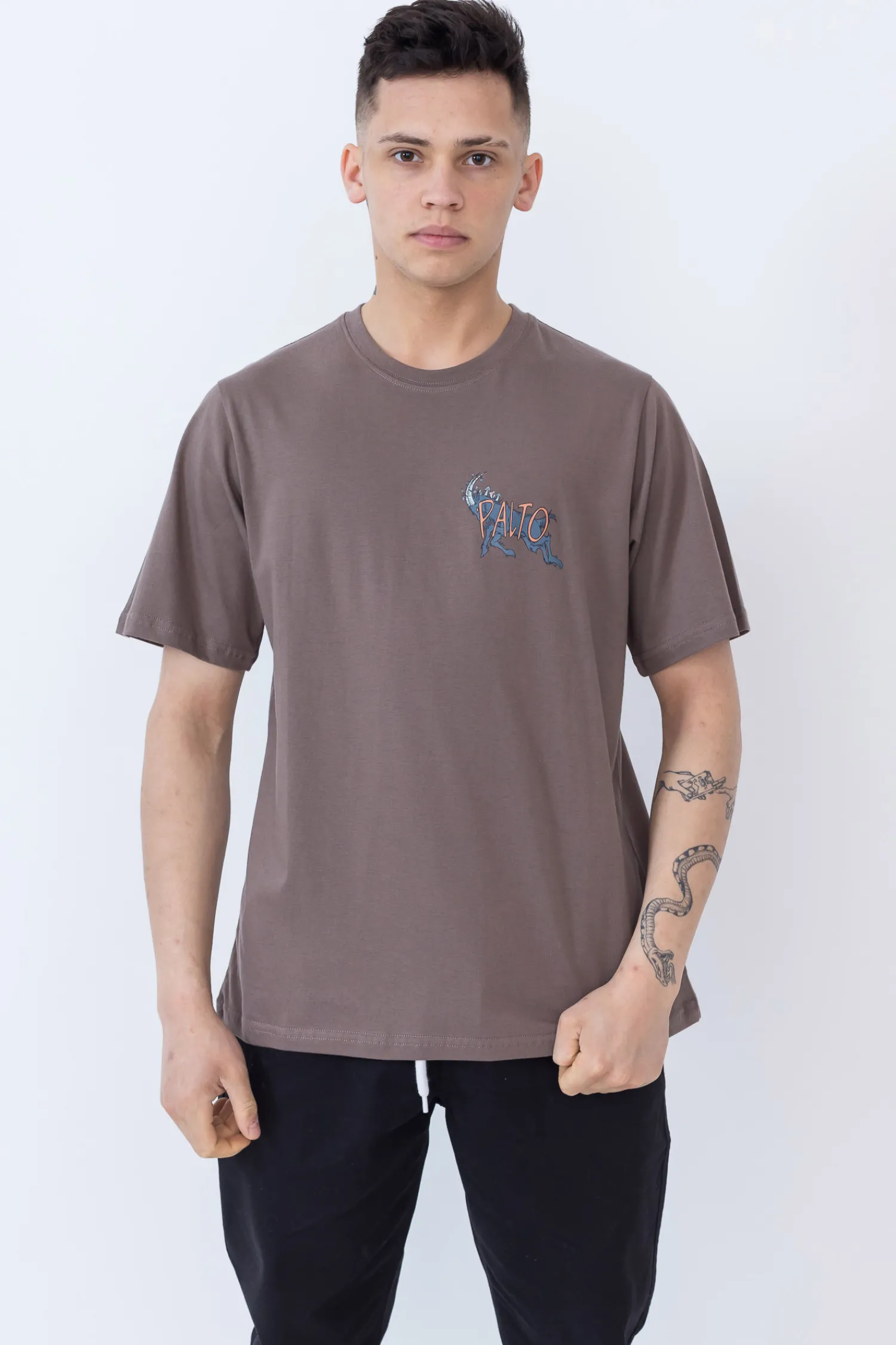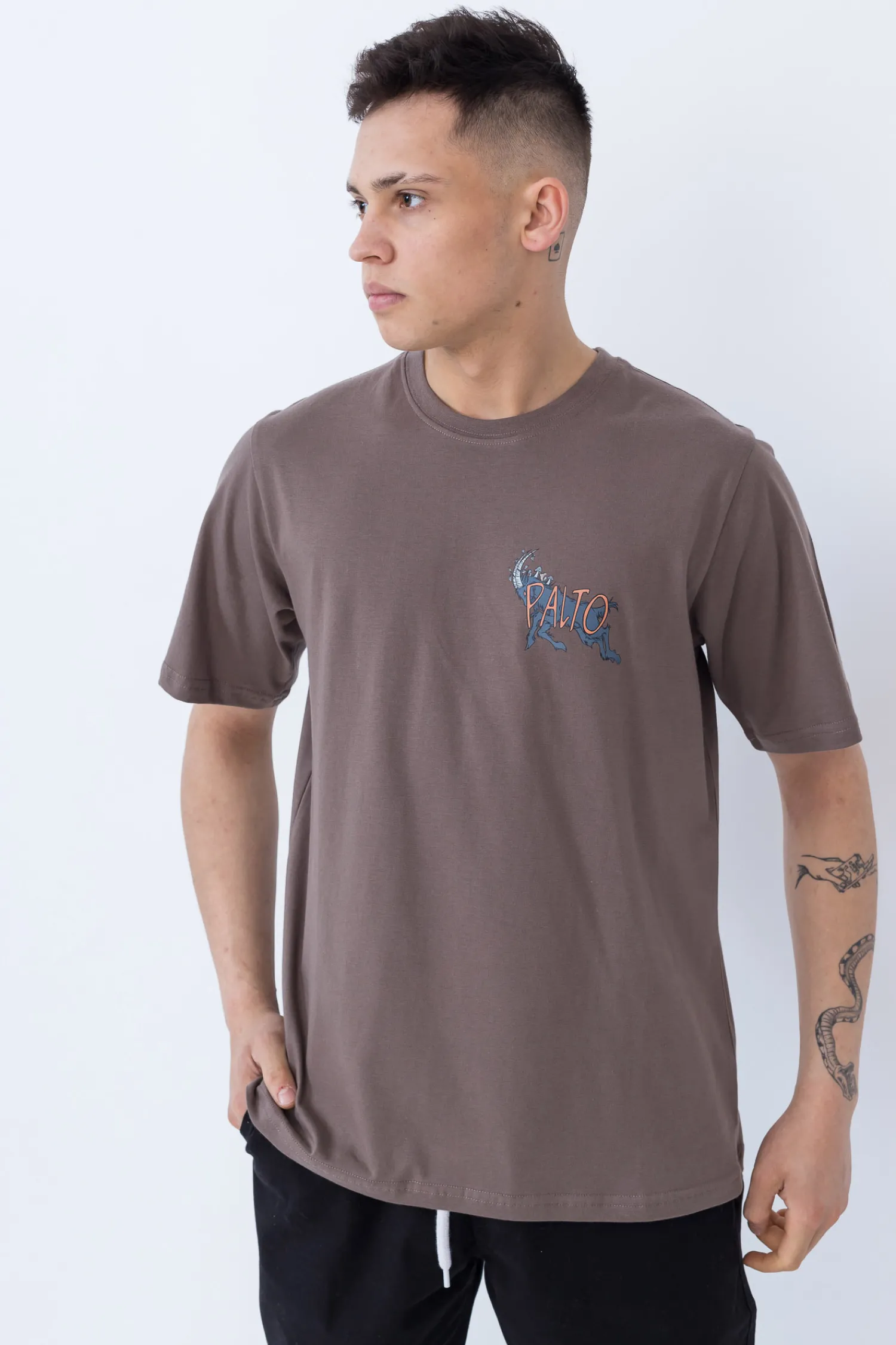 Koszulka t-shirt Palto G.O.A.T z nadrukiem kozła na przodzie i tyle, w kolorze brązowym. T-shirt z czystej bawełny z wyrazistą grafiką na piersi to niezbędny model na codzienne wyprawy.