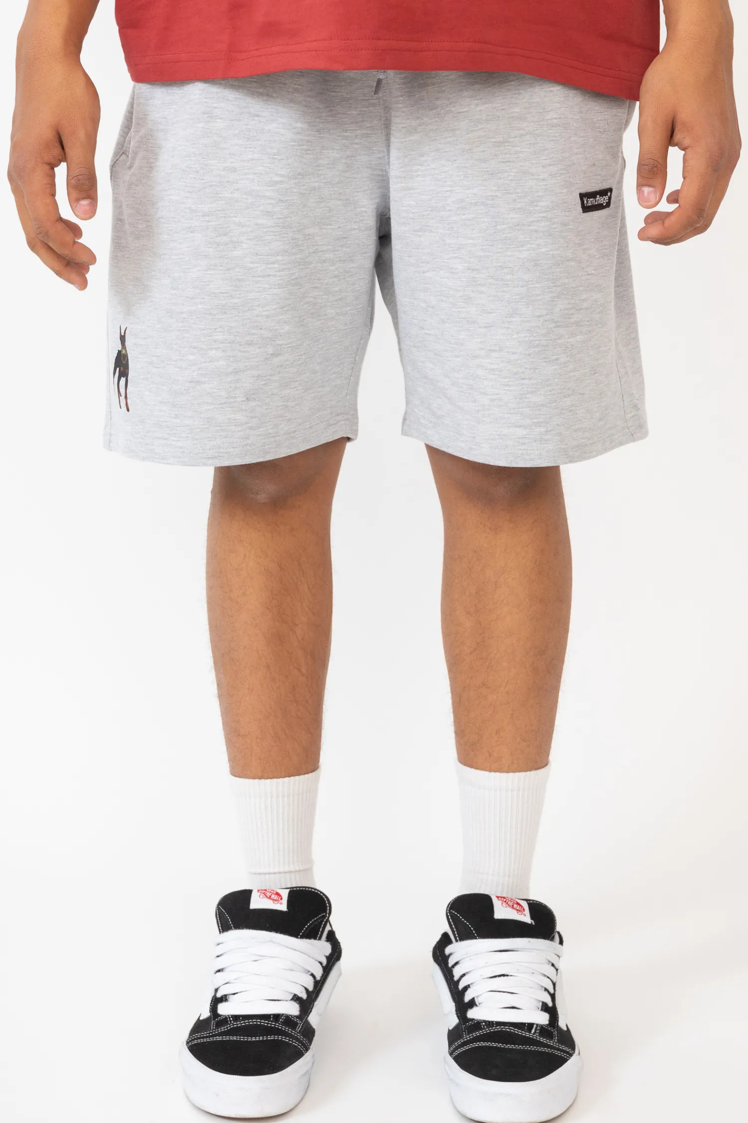 Spodenki materiałowe Kamuflage DOBER$$$ w kolorze szarym. Szorty w luźniejszym kroju ze ściągaczem w pasie idealnie sprawdzą się w ciepłe dni.