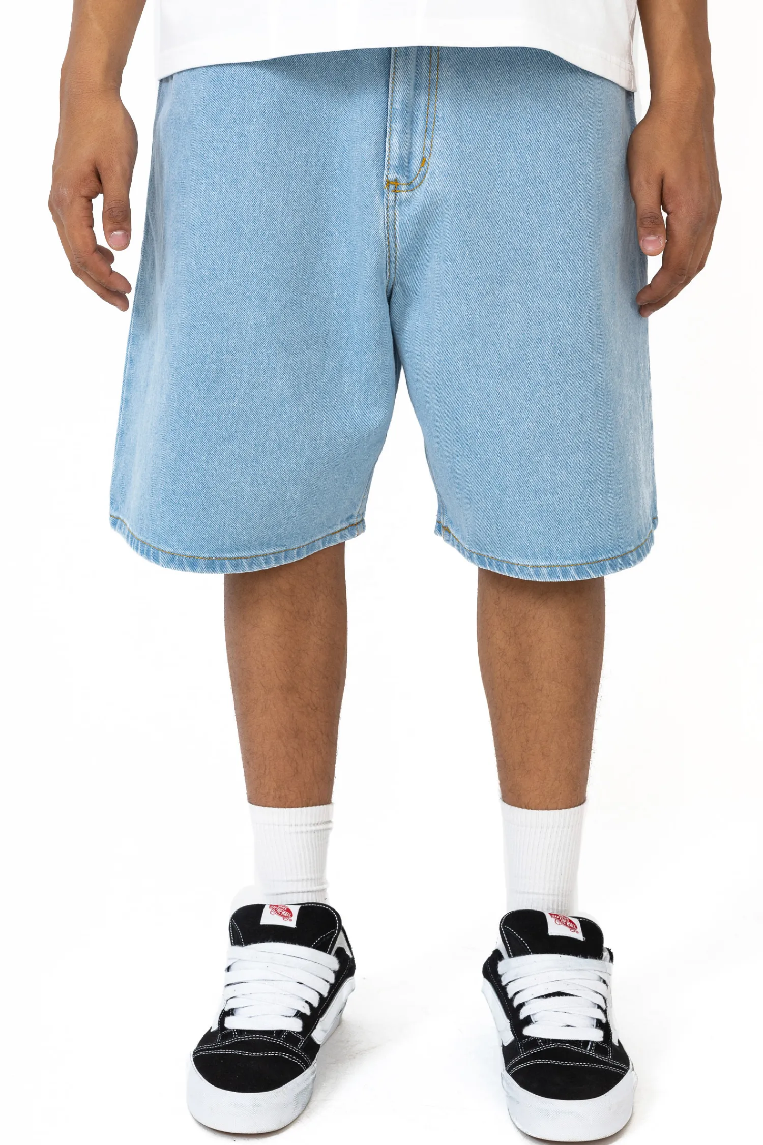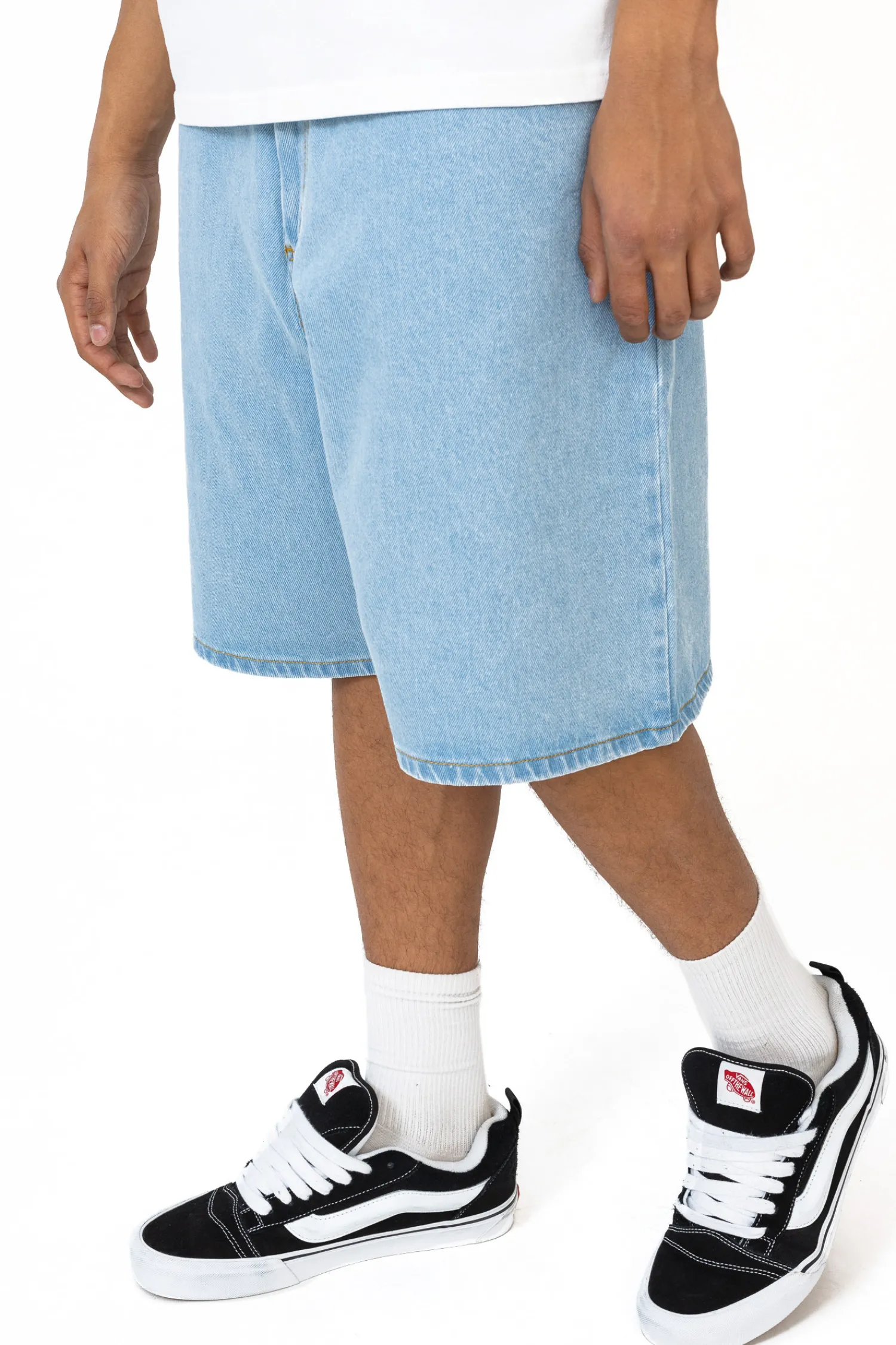 Jortsy Kamuflage Way Too Big Light Blue to synonim wygody i urbanistycznego designu. Uszyto je z materiału wysokiej jakości, co zapewnia ich długowieczność oraz komfort użytkowania. Wyróżnia je krój Ultra Baggy, co jest nie tylko modne, ale również funkcjonalne, idealne dla tych, którzy cenią sobie nieograniczoną swobodę ruchu. Model ten wyposażony jest w standardowe pięć kieszeni – trzy z przodu i dwie obszerne kieszenie z tyłu. Niebanalny akcent stanowi dyskretna, czarna naszywka z logotypem Kamuflage umieszczona nad jedną z tylnych kieszeni, co nadaje temu modelowi wyjątkowego wyglądu. Szorty te staną się kluczowym elementem nieformalnych, letnich zestawów.